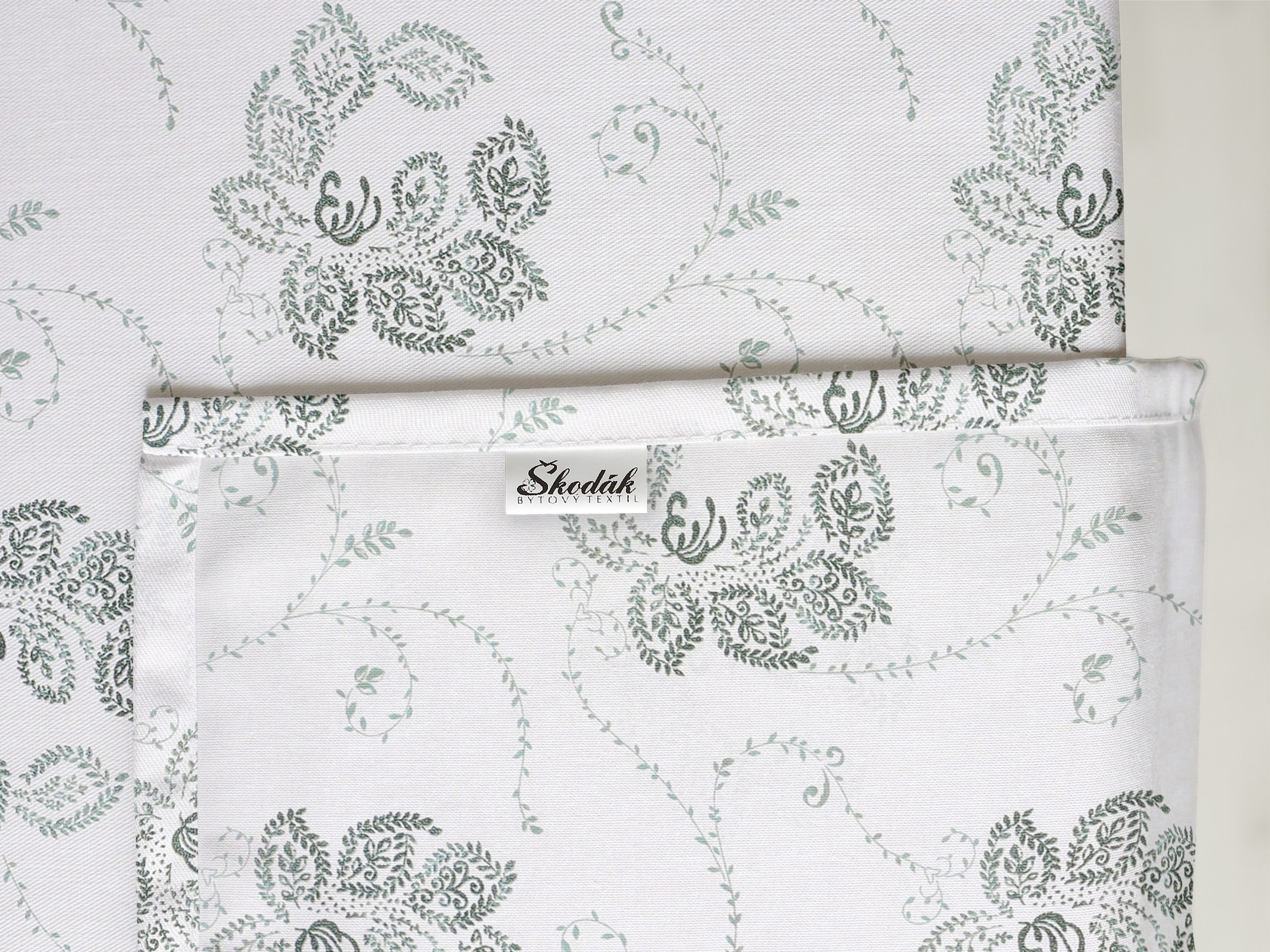 Hranatý bavlněný ubrus se zelenými ornamenty je ideální volbou pro ty, kteří hledají kombinaci elegance a funkčnosti. Dejte svému stolu šmrnc s tímto nádherným moderním ubrusem, který je skvělým doplňkem pro každou příležitost. Skvělá investice pro váš jídelní stůl. Ubrus se skvěle hodí pro každodenní použití.