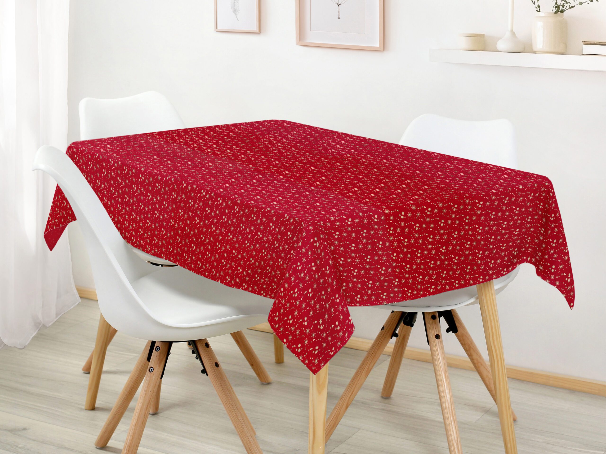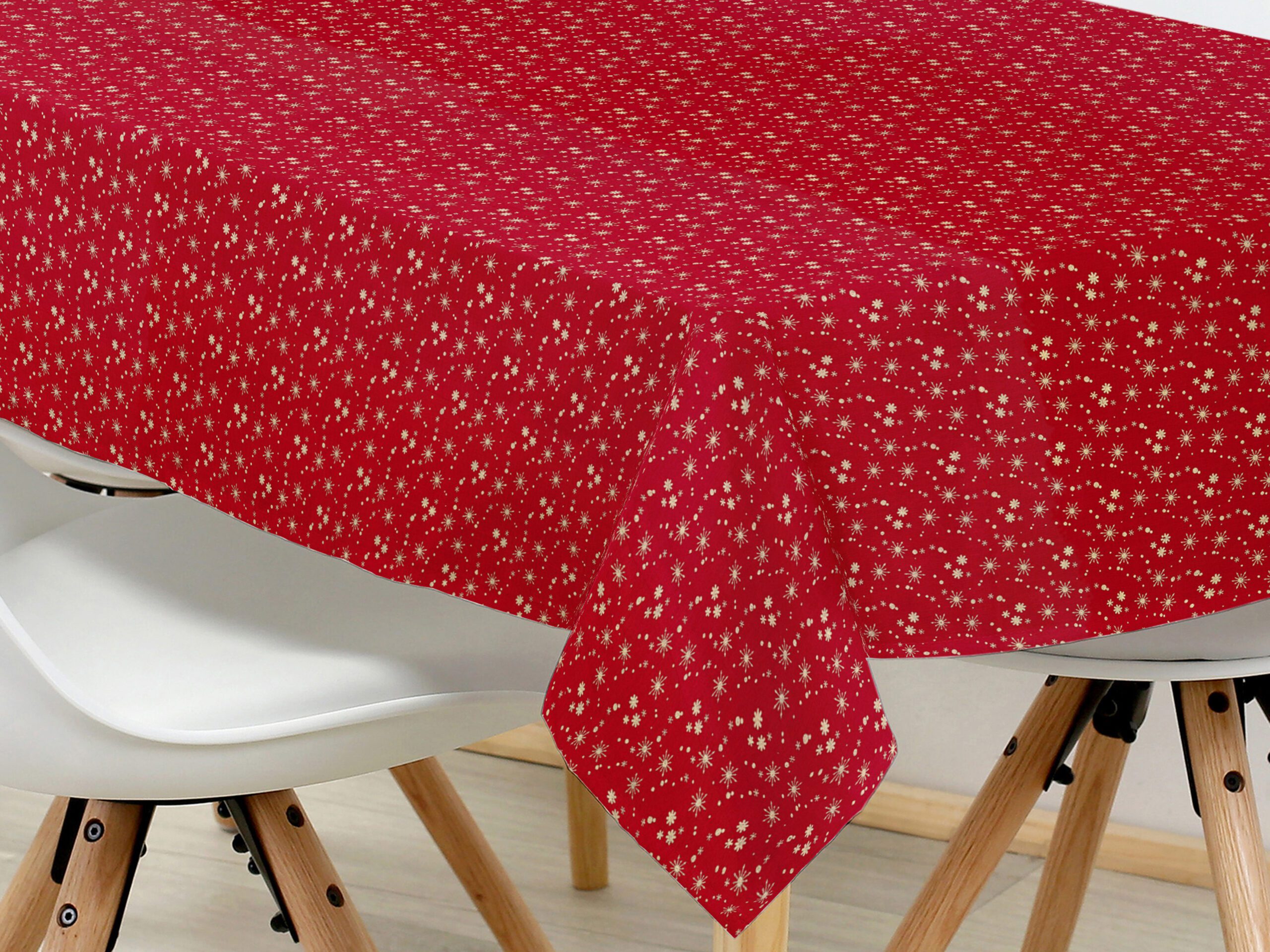 Náš hranatý bavlněný ubrus zlaté vločky na červené je přesně to, co oživí váš jídelní stůl a dodá mu nový nádech. Díky preciznímu provedení a 100% bavlně je tento vánoční ubrus nejen krásný, ale i kvalitní.