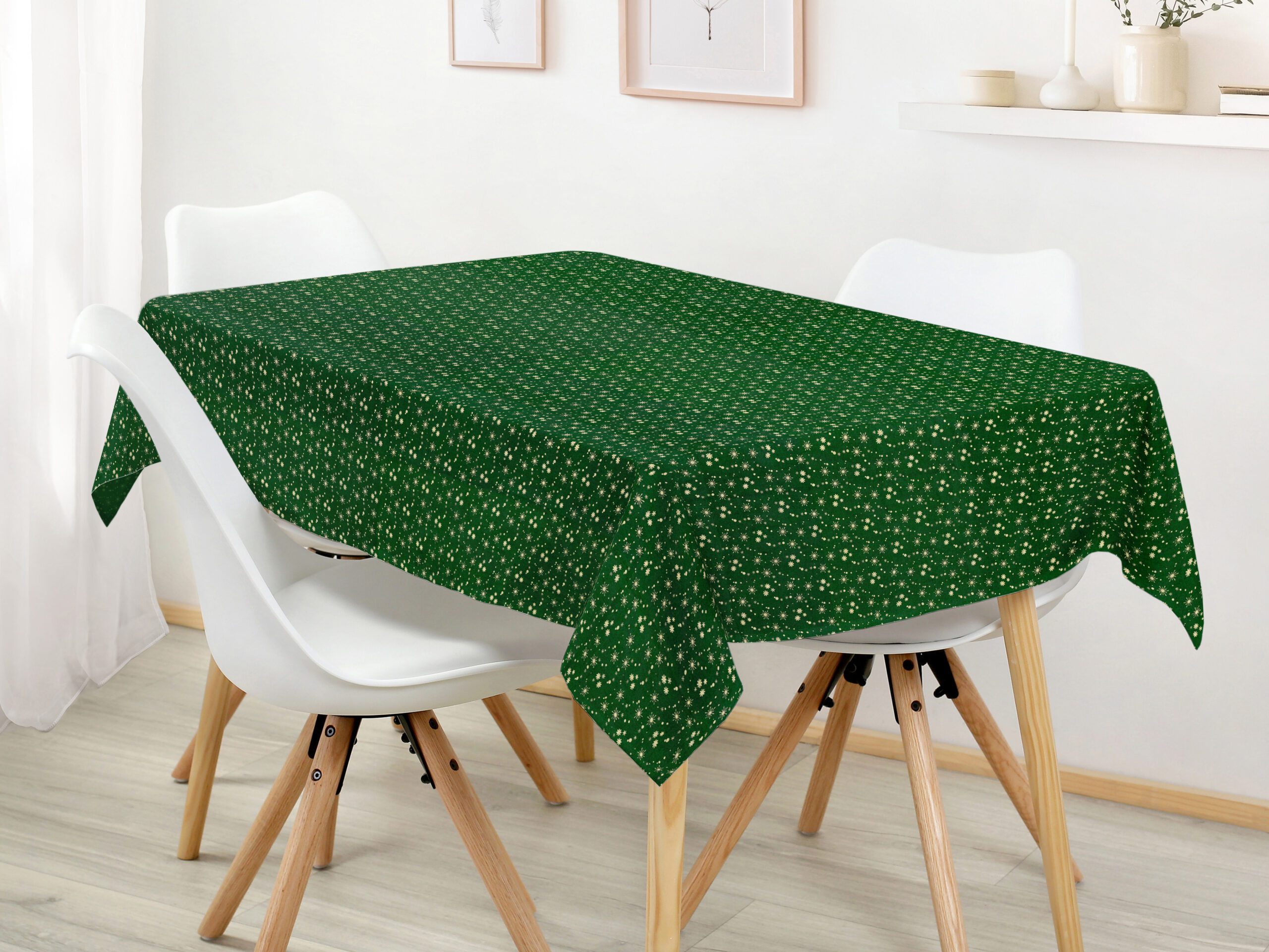 Náš hranatý bavlněný ubrus zlaté vločky na zelené je přesně to, co oživí váš jídelní stůl a dodá mu nový nádech. Díky preciznímu provedení a 100% bavlně je tento vánoční ubrus nejen krásný, ale i kvalitní.