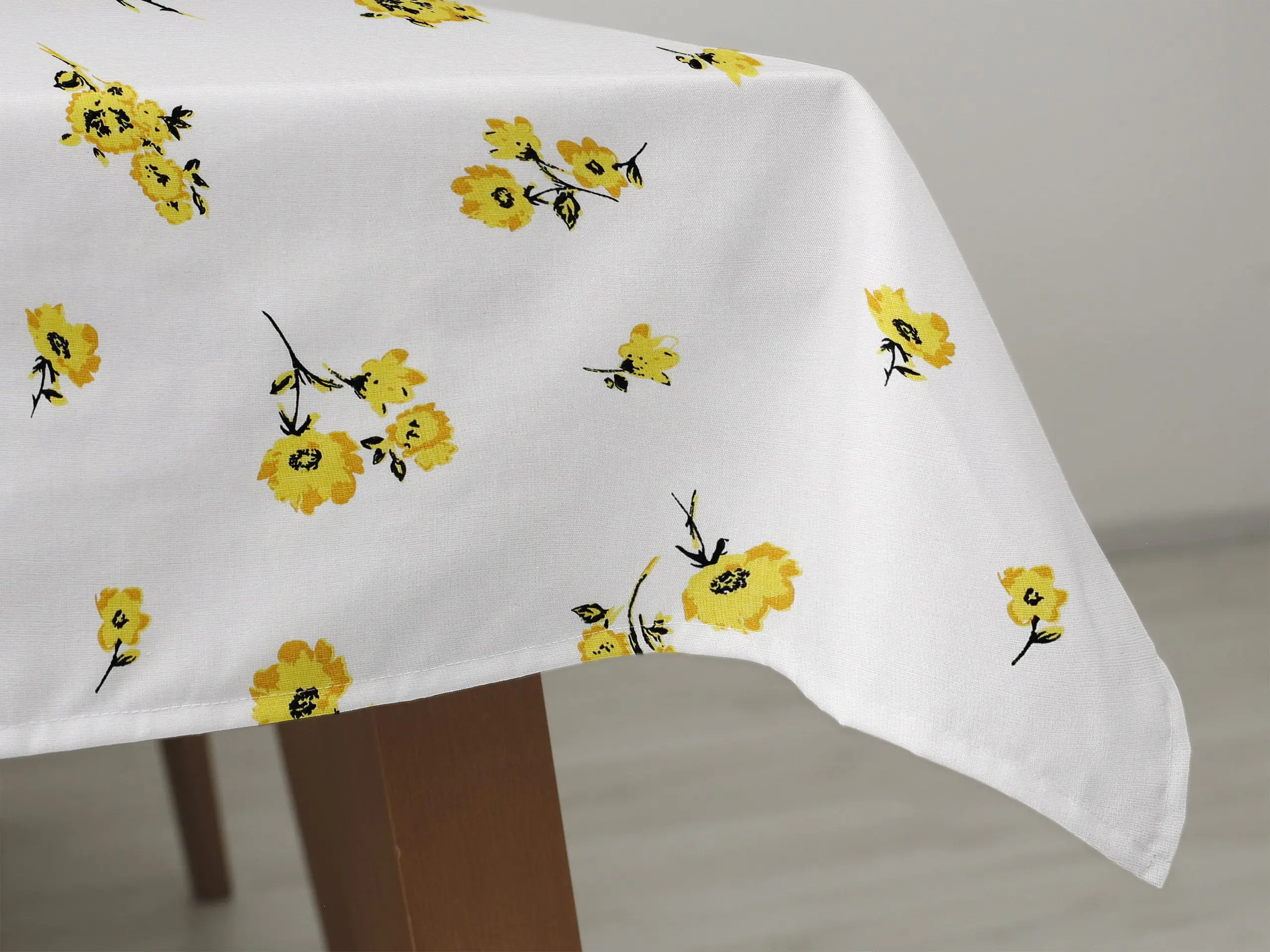 Hranatý bavlněný ubrus se vzorem žlutých kvítků na bílé je ideální volbou pro ty, kteří hledají kombinaci elegance a funkčnosti. Dejte svému stolu šmrnc s tímto nádherným květinovým ubrusem, který je skvělým doplňkem pro každou příležitost. Skvělá investice pro váš jídelní stůl. Ubrus se skvěle hodí pro každodenní použití.
