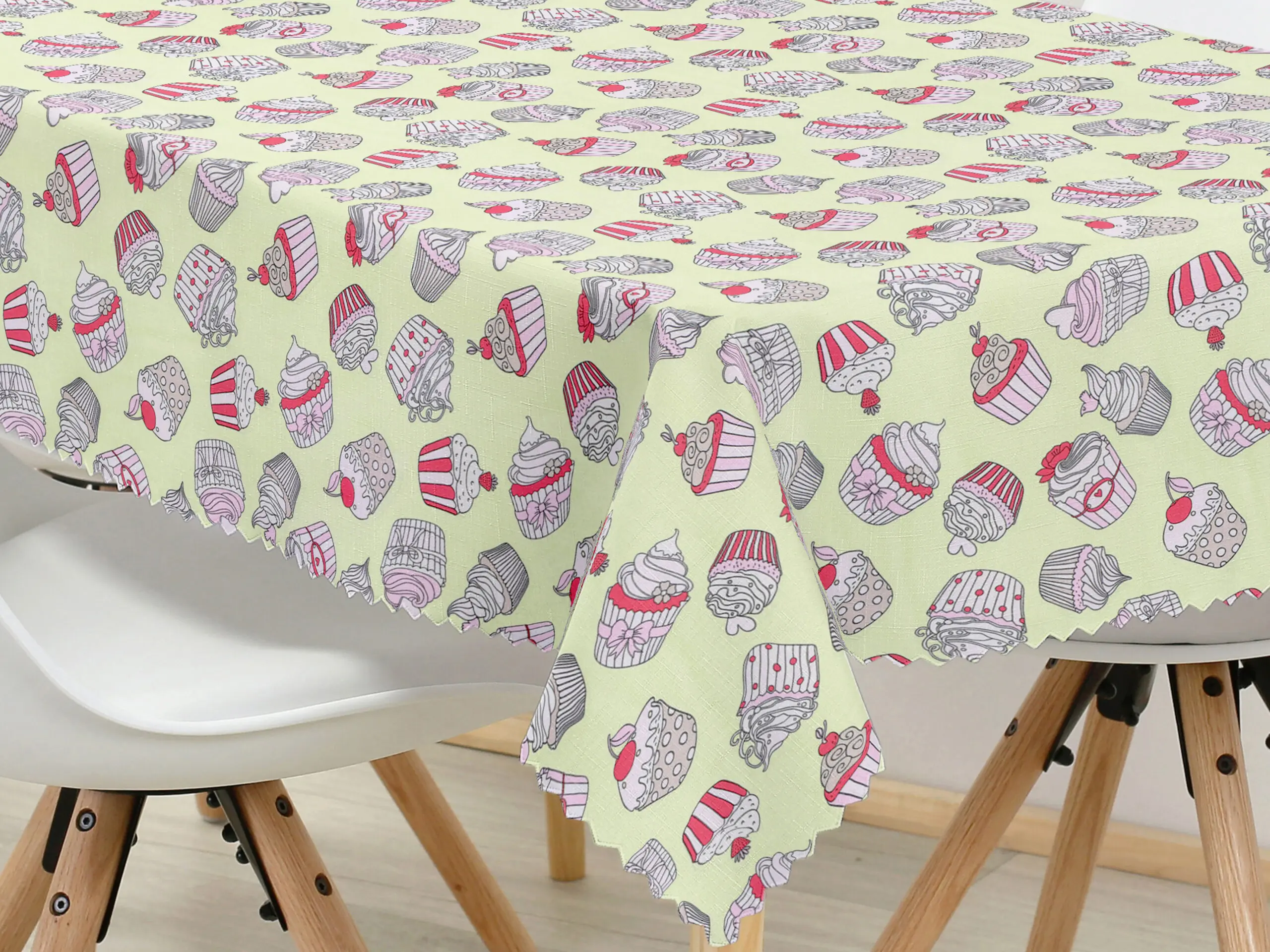- 100% polyester: Tento světle zelený ubrus se vzorem muffinů je vyroben z pevného a odolného polyesteru, který vydrží dlouhé roky.