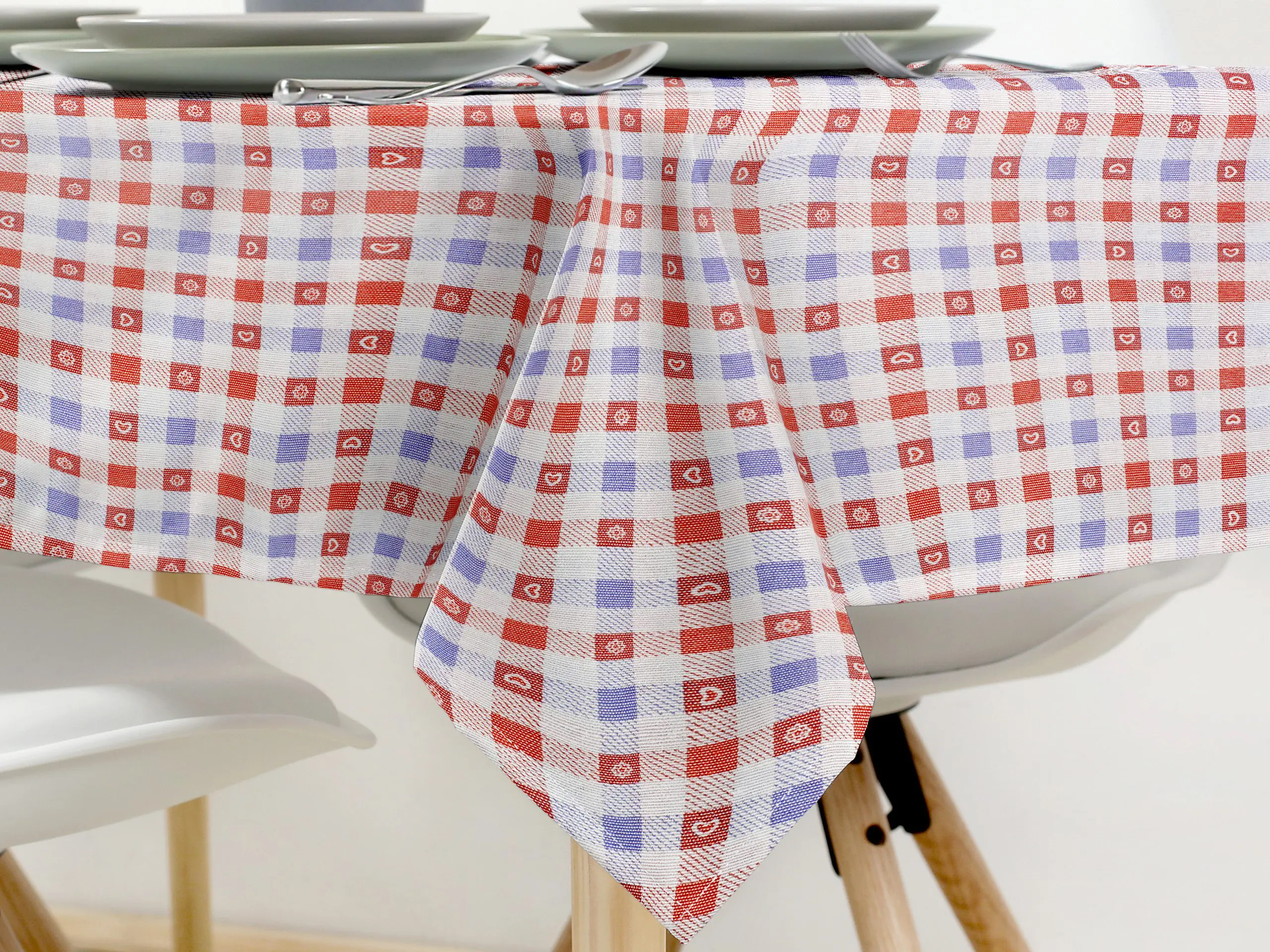 Kategorie: Hranaté ubrusy, Bytový textil, Kárované, Hranaté ubrusy - se vzorem, Se srdíčky, Ubrusy