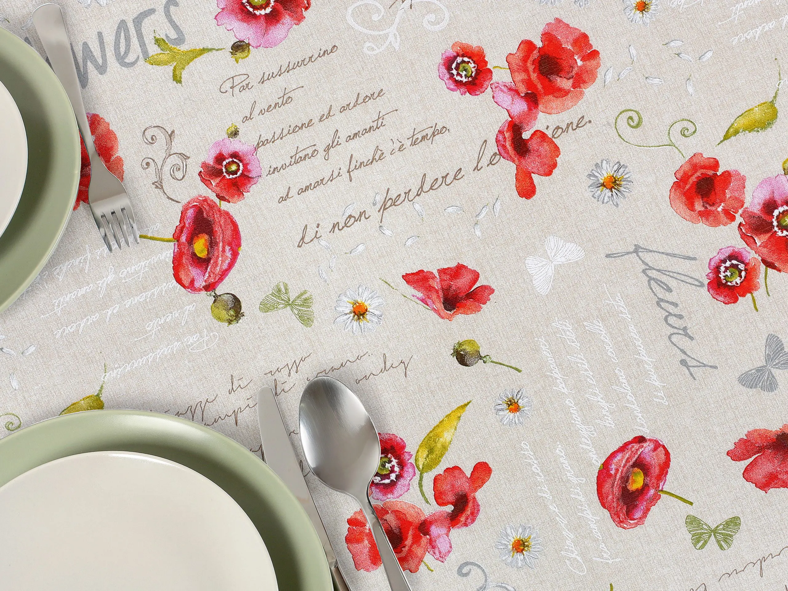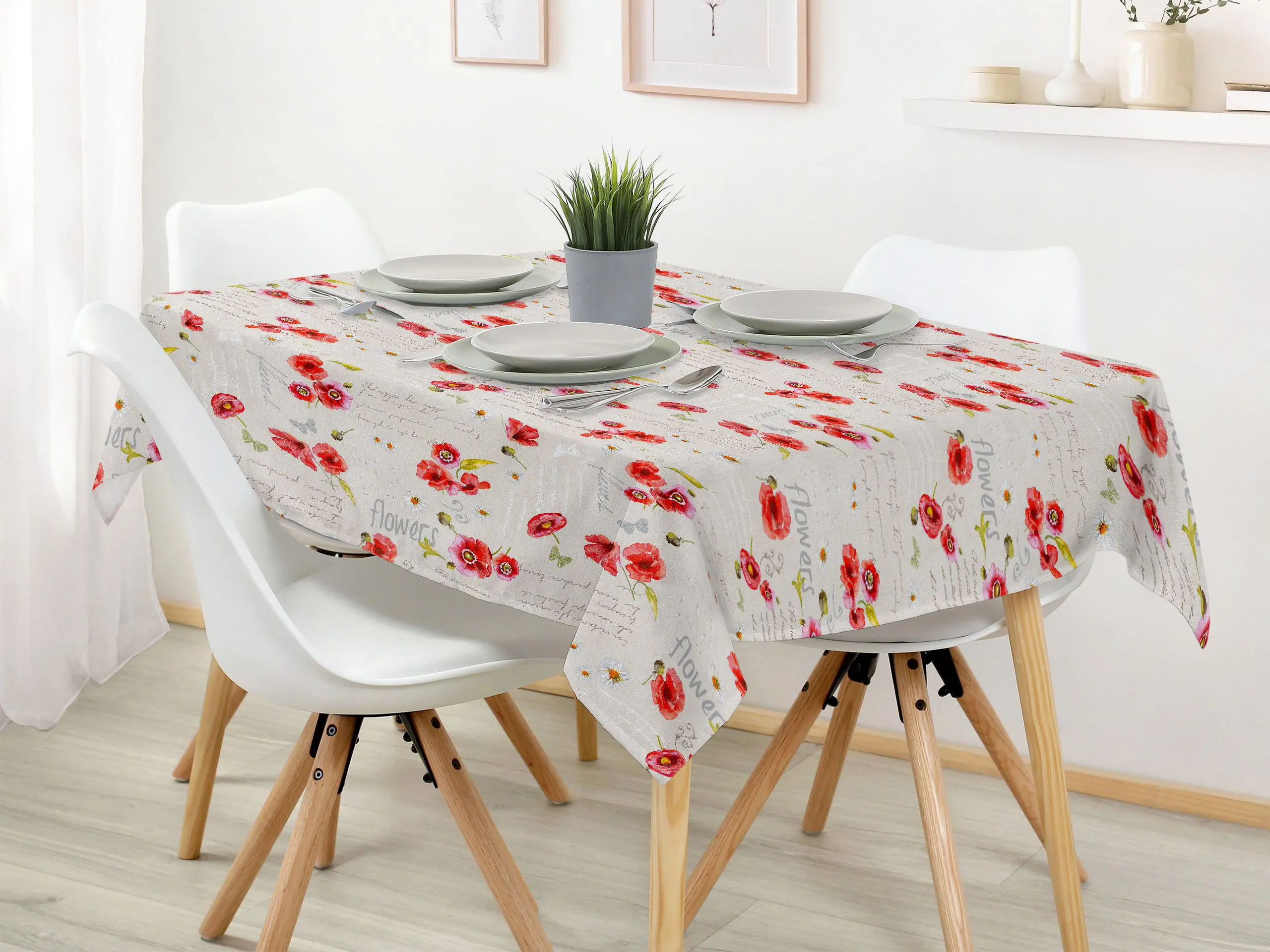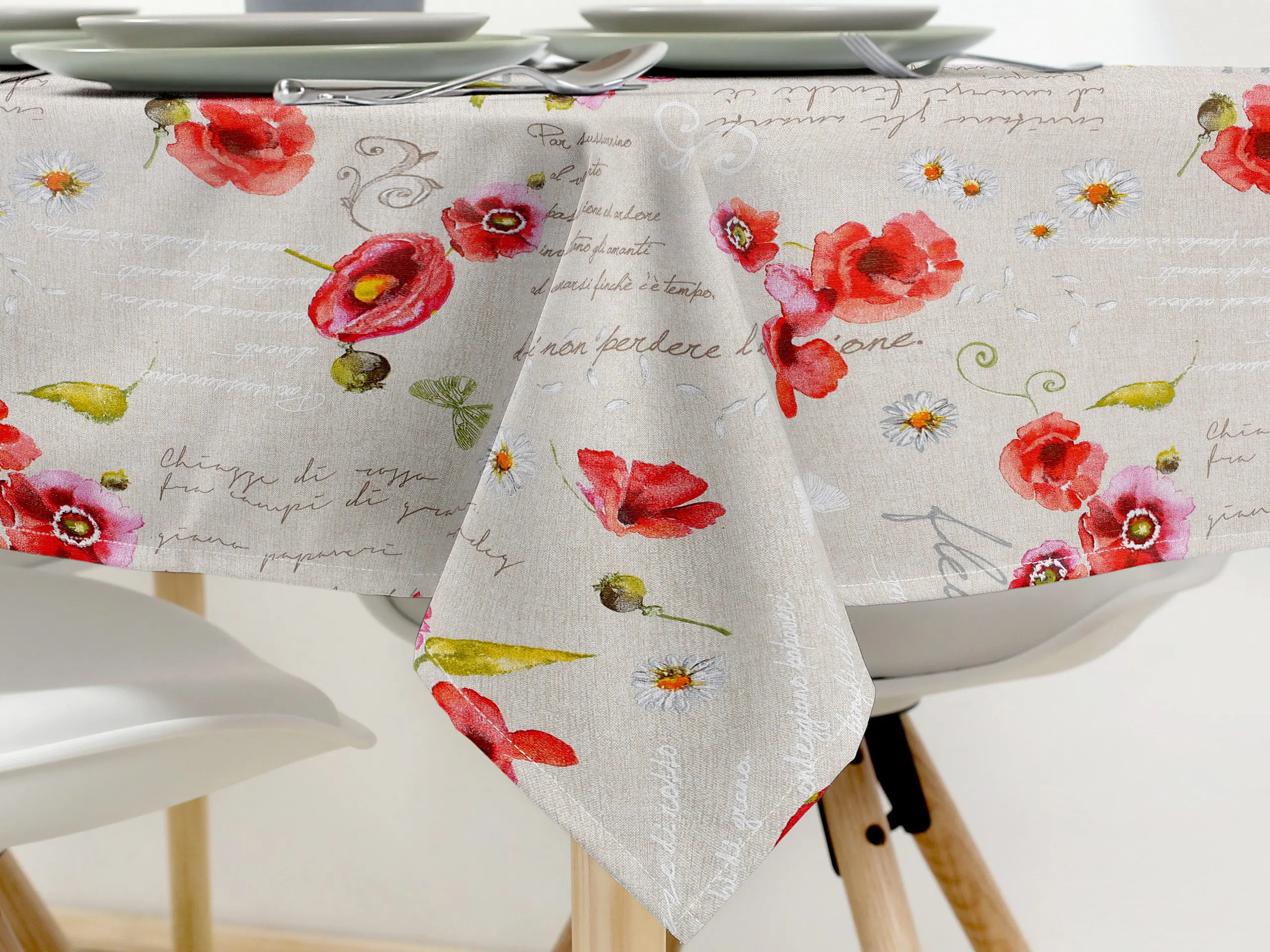 Hranatý ubrus Loneta se vzorem vlčích máků je ideální volbou pro ty, kteří hledají kombinaci elegance a funkčnosti. Dejte svému stolu šmrnc s tímto nádherným květinovým ubrusem, který je skvělým doplňkem pro každou příležitost. Skvělá investice pro váš jídelní stůl. Ubrus se skvěle hodí pro každodenní použití.