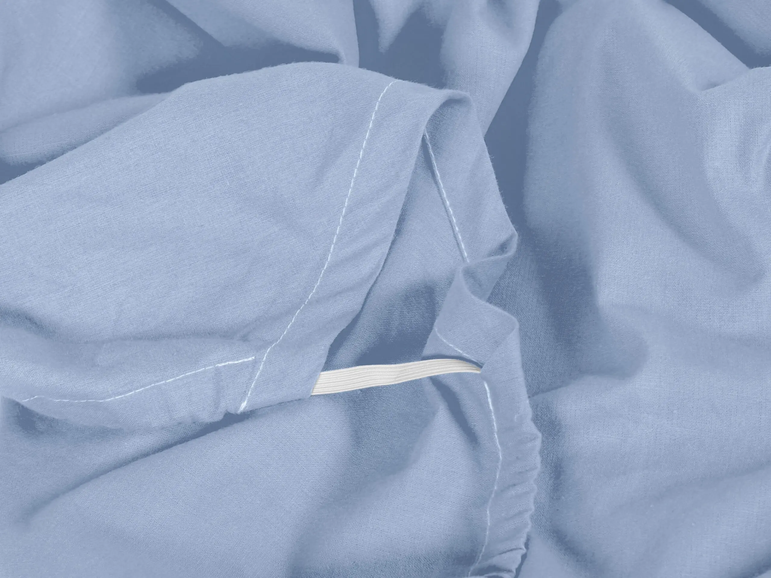 S gramáží 180 g/m2 je naše nebesky modré prostěradlo odolné a zachová si tak své barvy i po mnoha pracích cyklech.