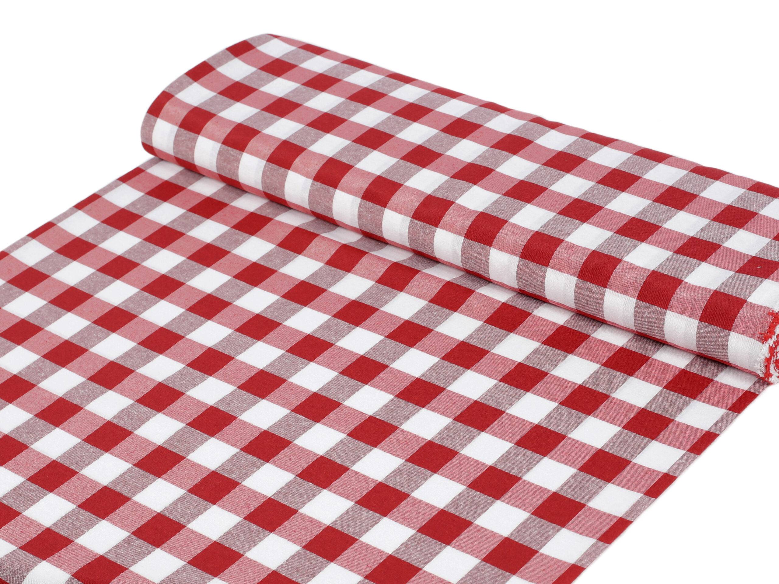 Náš kanafas Menorca červené káro je hustě tkaný se složením 55 % bavlny a 45 % polyesteru.