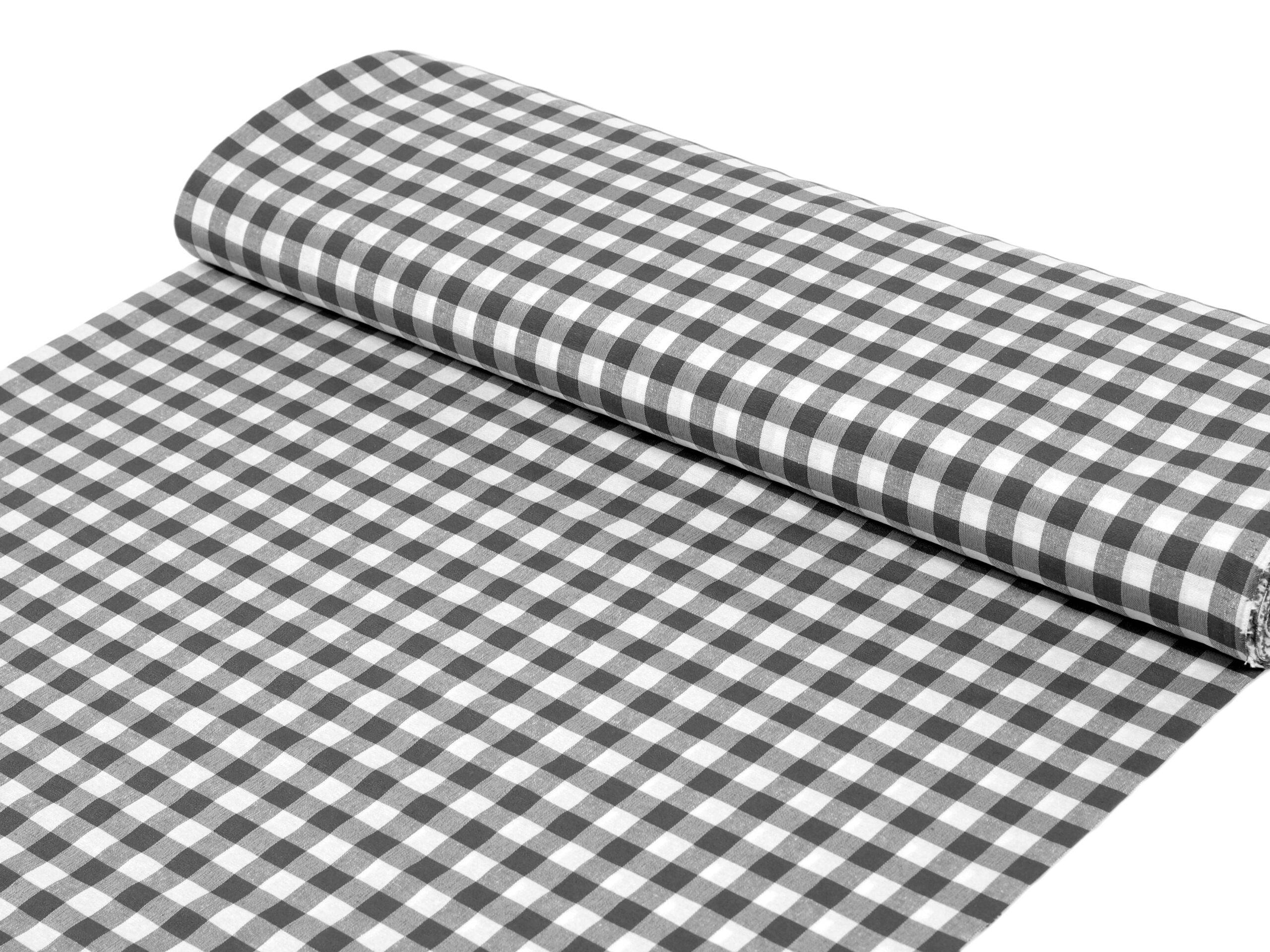 Náš kanafas Menorca tmavě šedé káro je hustě tkaný se složením 55 % bavlny a 45 % polyesteru.