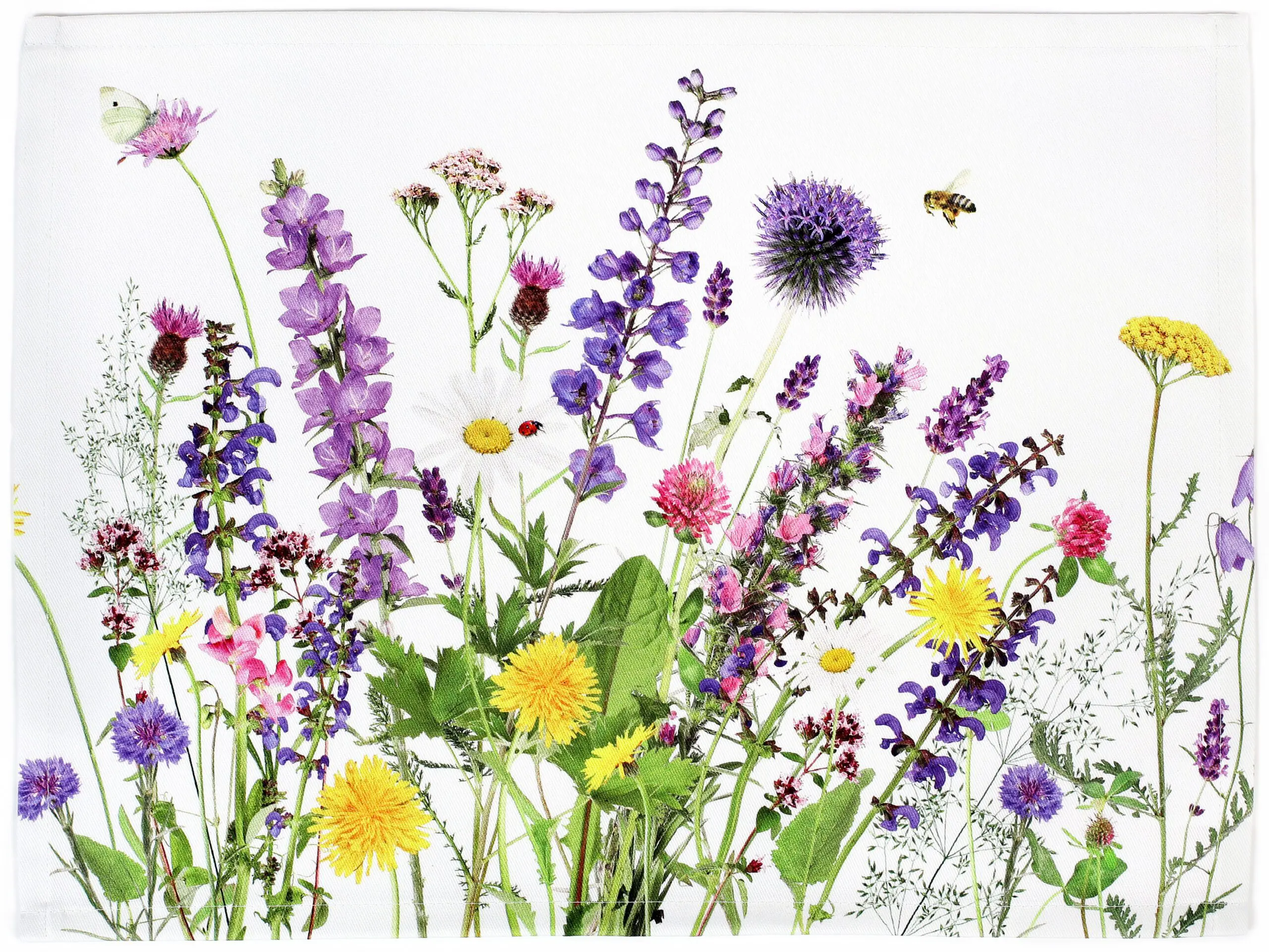 Toto keprové prostírání loukou s beruškou je skvělou volbou pro jarní chvíle. Přidejte ho do svého jídelního setu a ozdobte si s ním váš jídelní stůl.