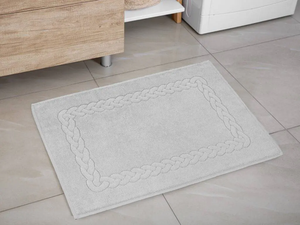 Koupelnová froté předložka je dostupná v šedé barvě, která dodá vaší koupelně moderní vzhled. Rozměry 50×70 cm jsou ideální pro umístění před vanu, sprchový kout nebo umyvadlo.