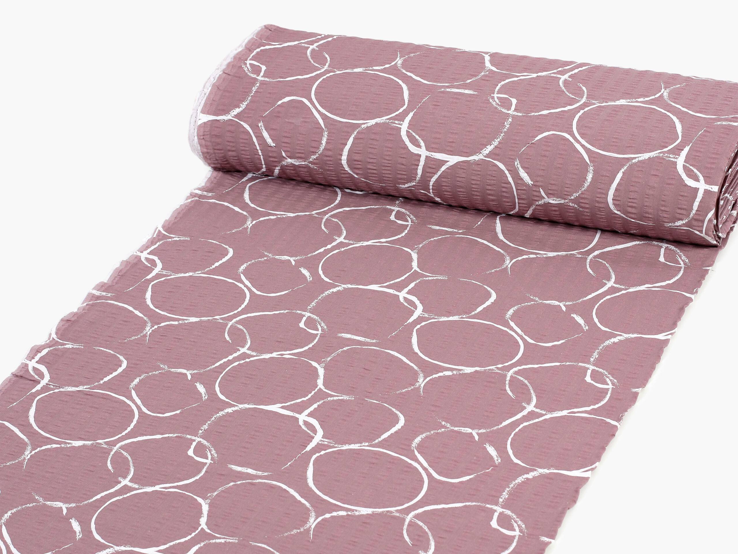 Krepová látka – bílá kola na vínové – metráž šířka 143 cm