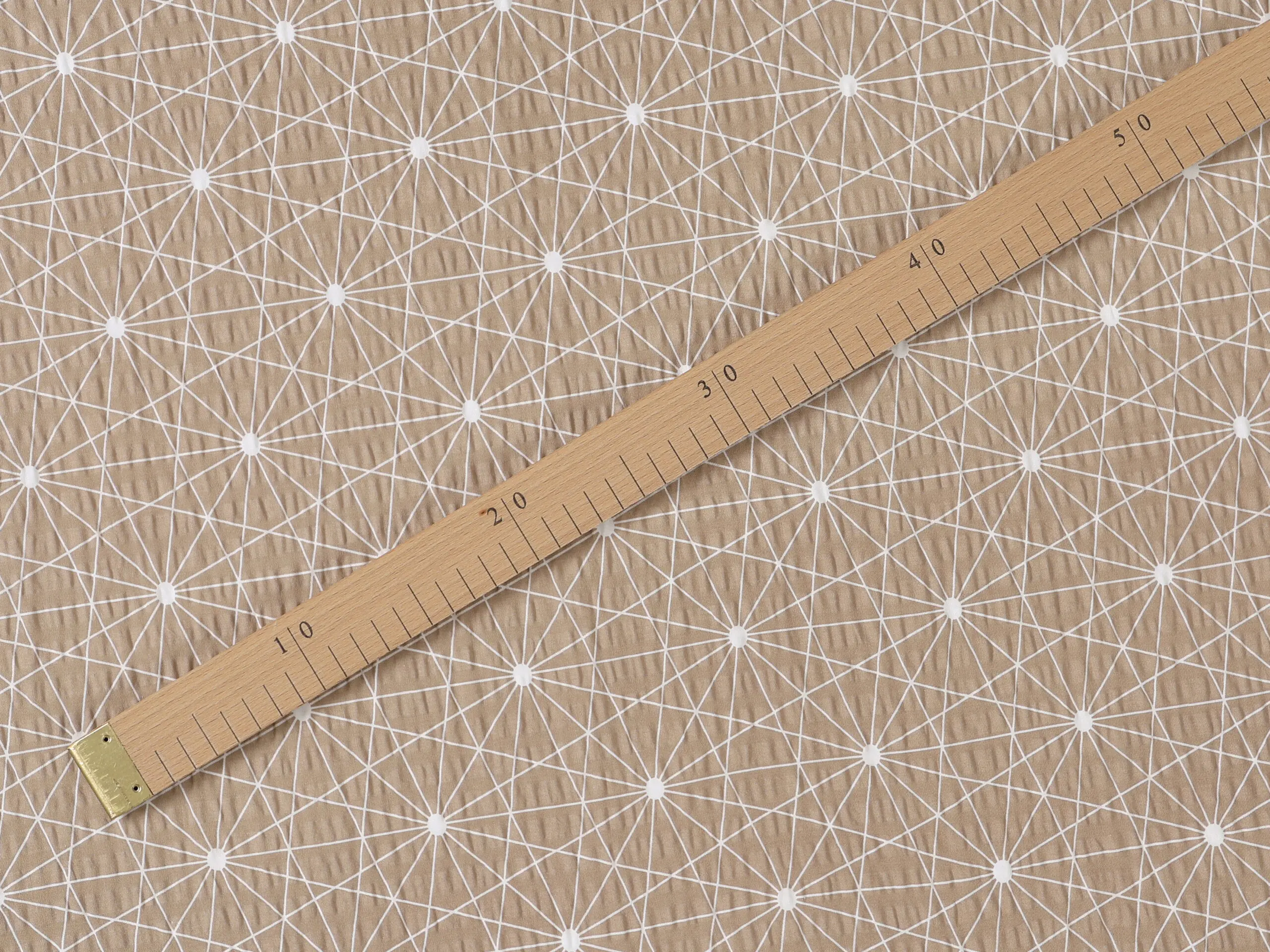 Krepová látka – bílé čáry na hnědé – metráž šířka 142 cm