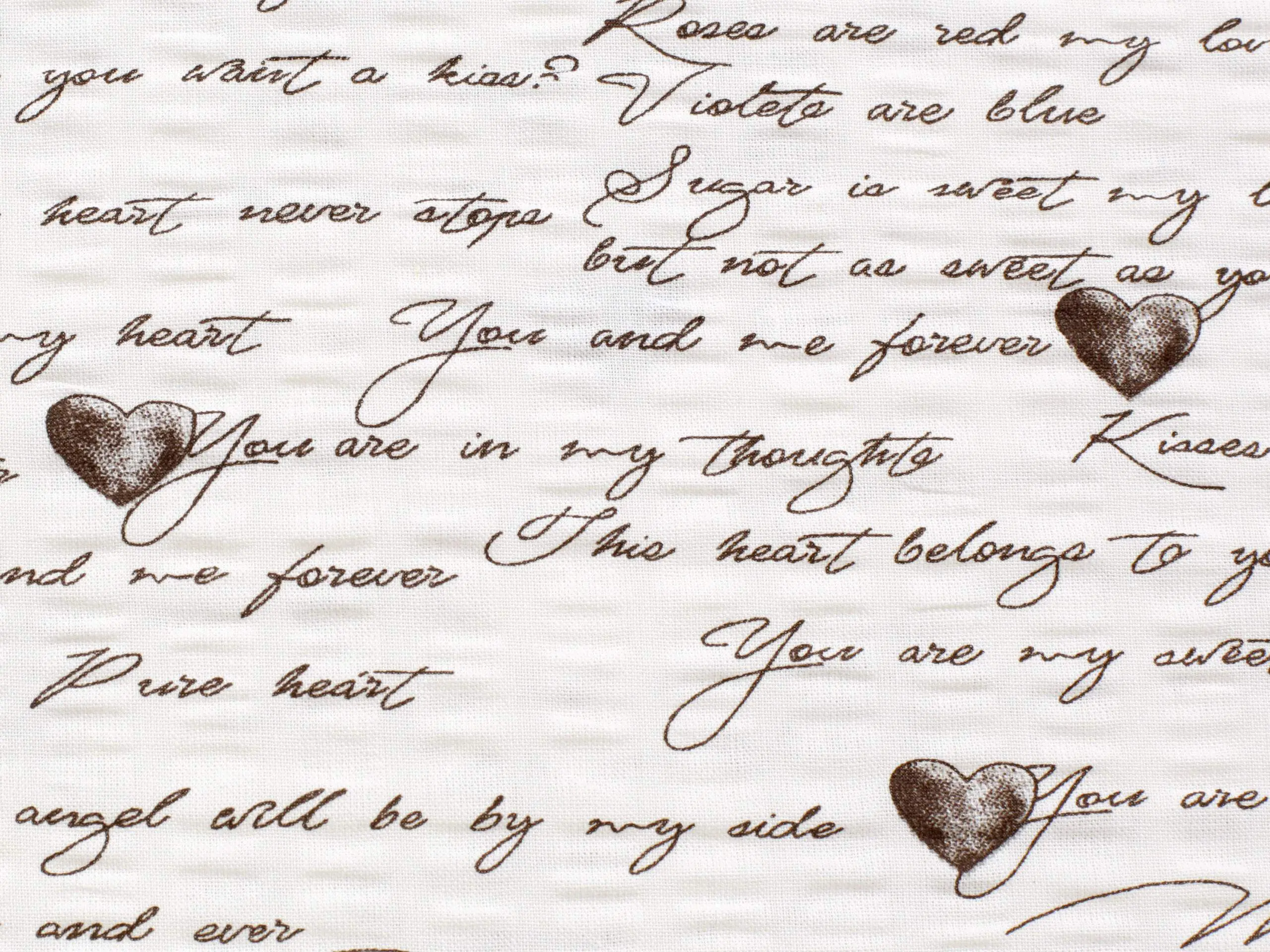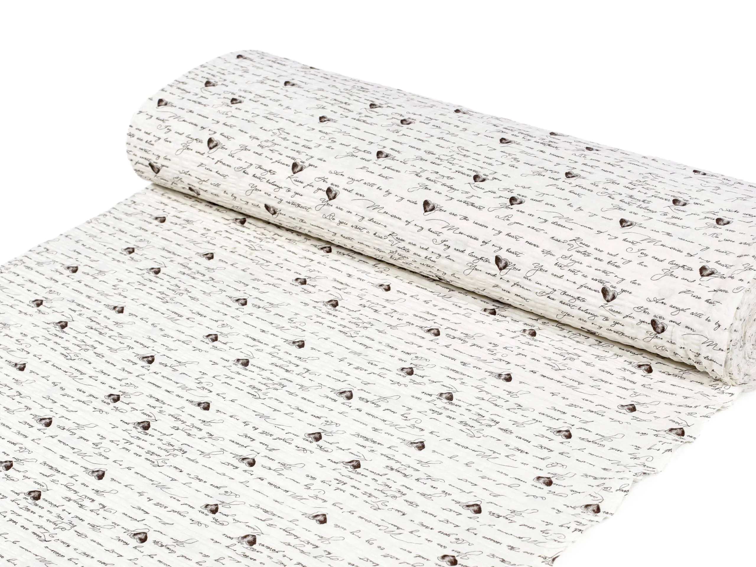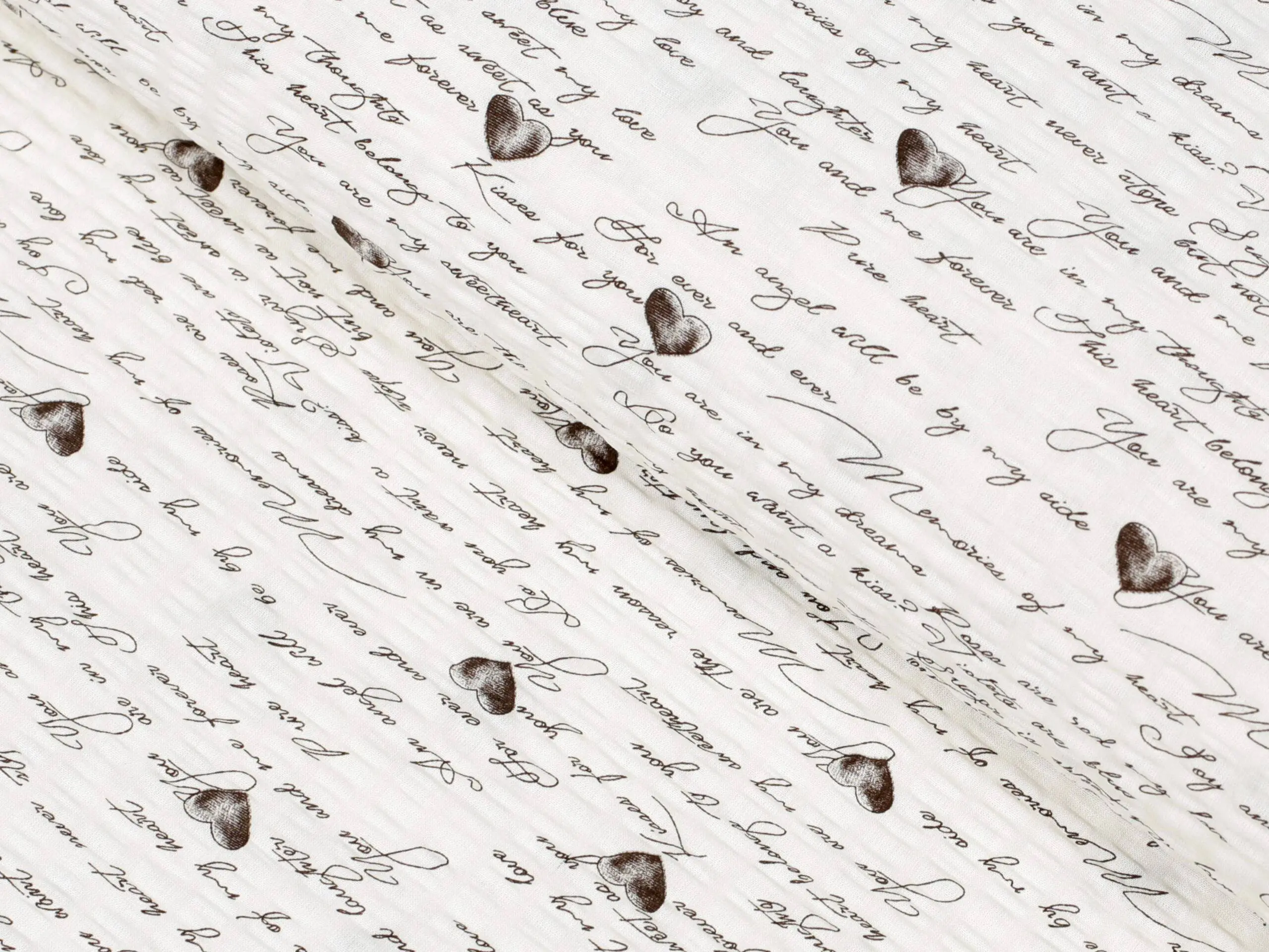 Krepová látka – Heart writing – metráž šířka 145 cm