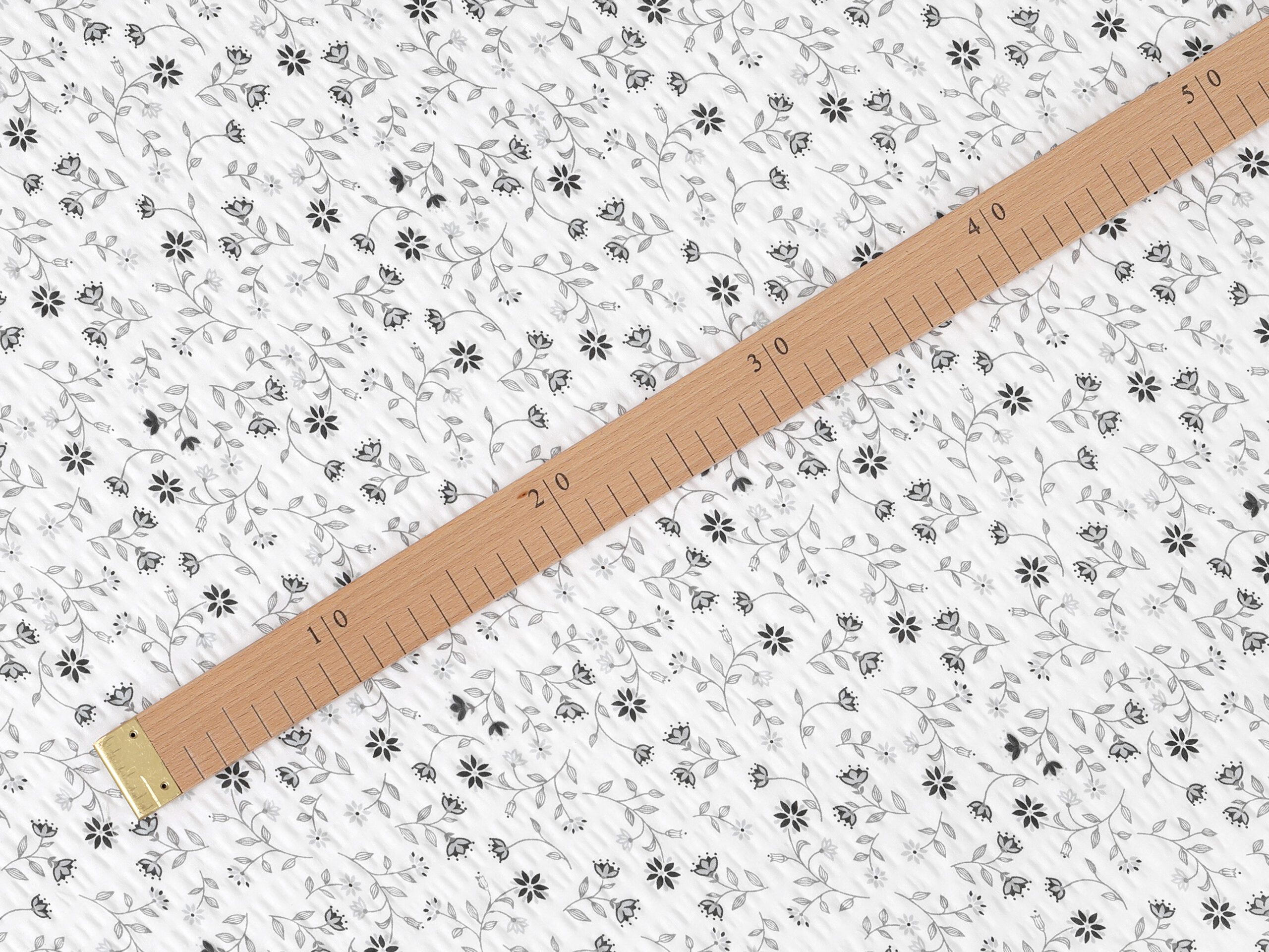 Naše krepová látka šedé kvítko na bílé značky Škodák, je vyrobená z měkčené 100% bavlny s gramáží 145g/m2 a šířce 142 cm.