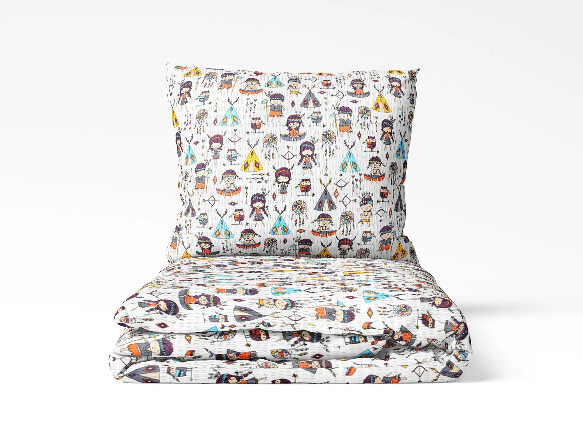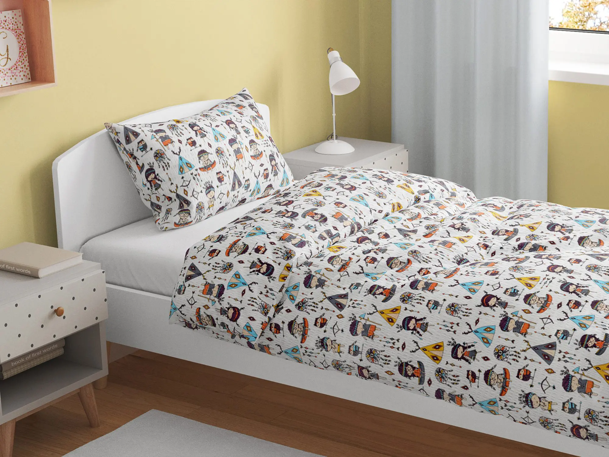 Naše krepové povlečení do školky indiáni kombinuje kvalitu a dlouhou životnost. Díky 100% bavlně v krepové úpravě je povlečení velmi příjemné na dotek.