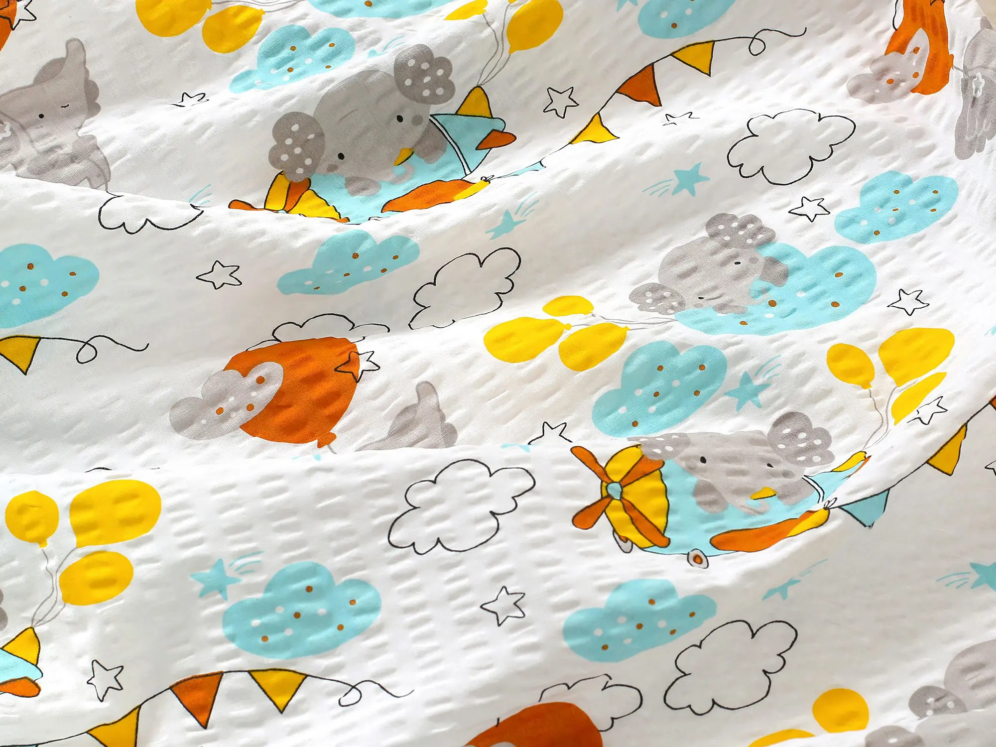 Naše krepové povlečení do školky létající sloník kombinuje kvalitu a dlouhou životnost. Díky 100% bavlně v krepové úpravě je povlečení velmi příjemné na dotek.