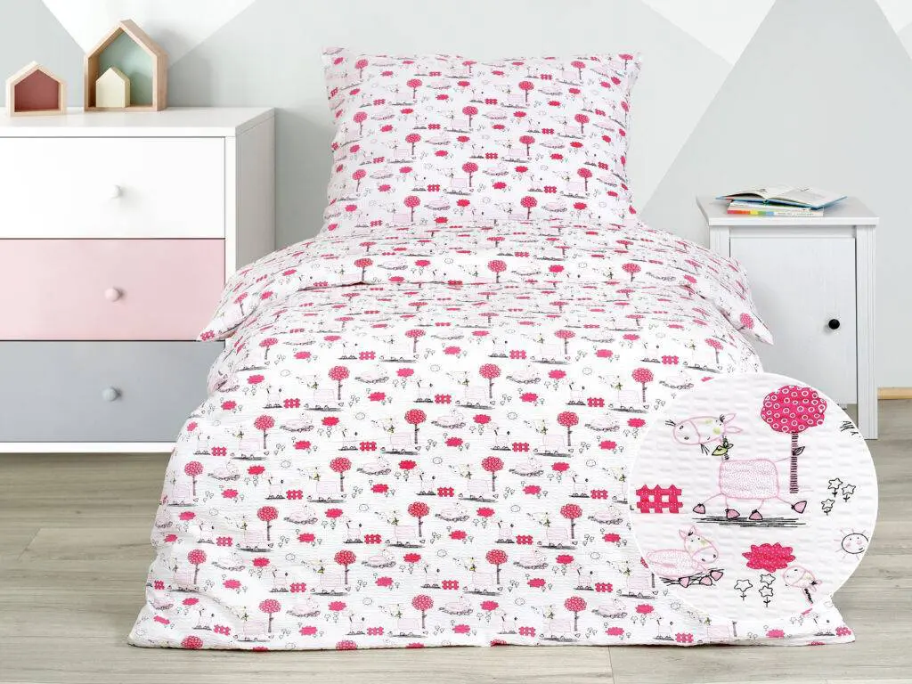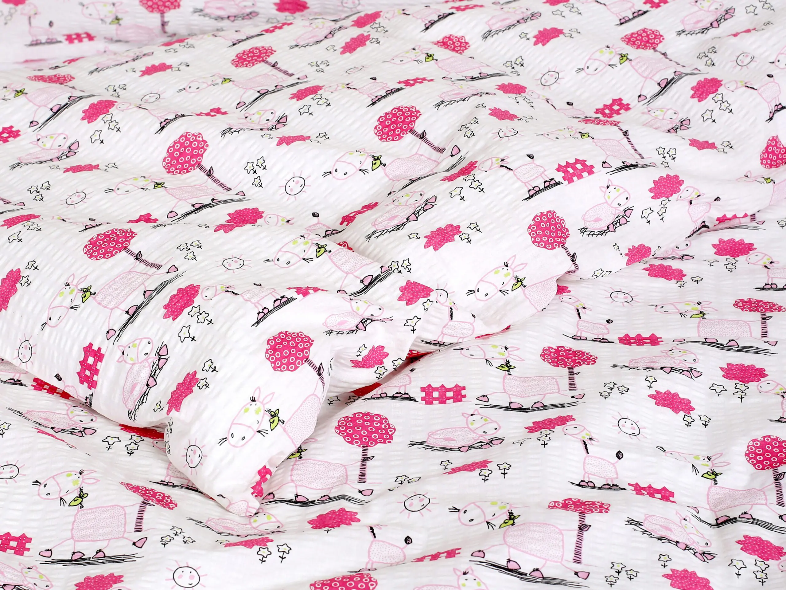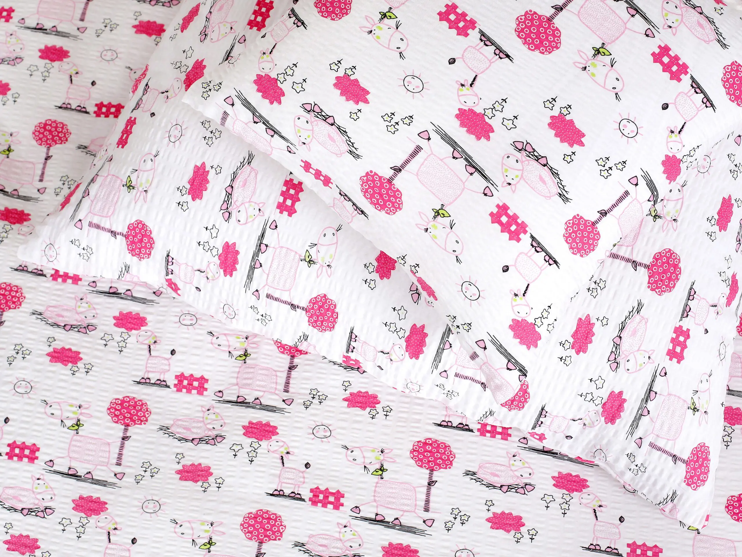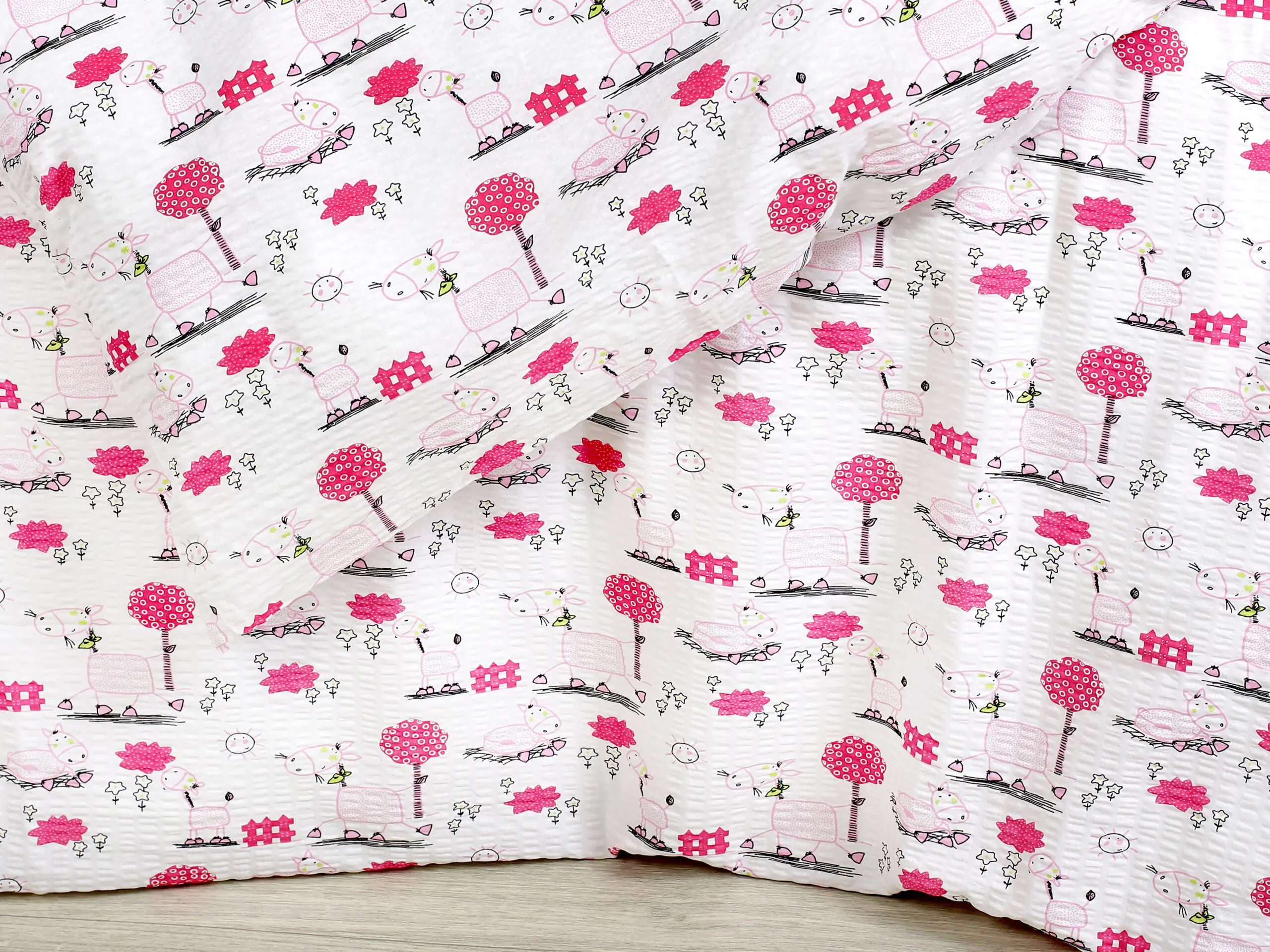 Naše krepové povlečení do školky růžoví oslíci kombinuje kvalitu a dlouhou životnost. Díky 100% bavlně v krepové úpravě je povlečení velmi příjemné na dotek.