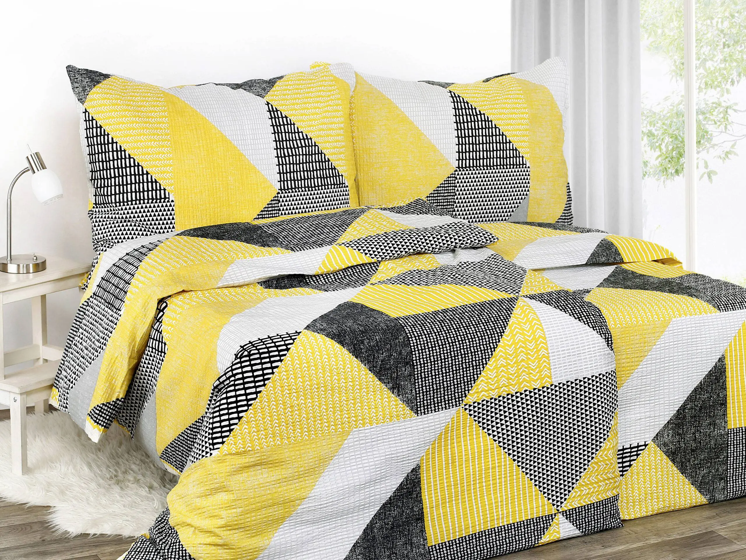 Naše krepové povlečení žluto-černé trojúhelníky kombinuje kvalitu a dlouhou životnost. Díky 100% bavlně v krepové úpravě je povlečení velmi příjemné na dotek.