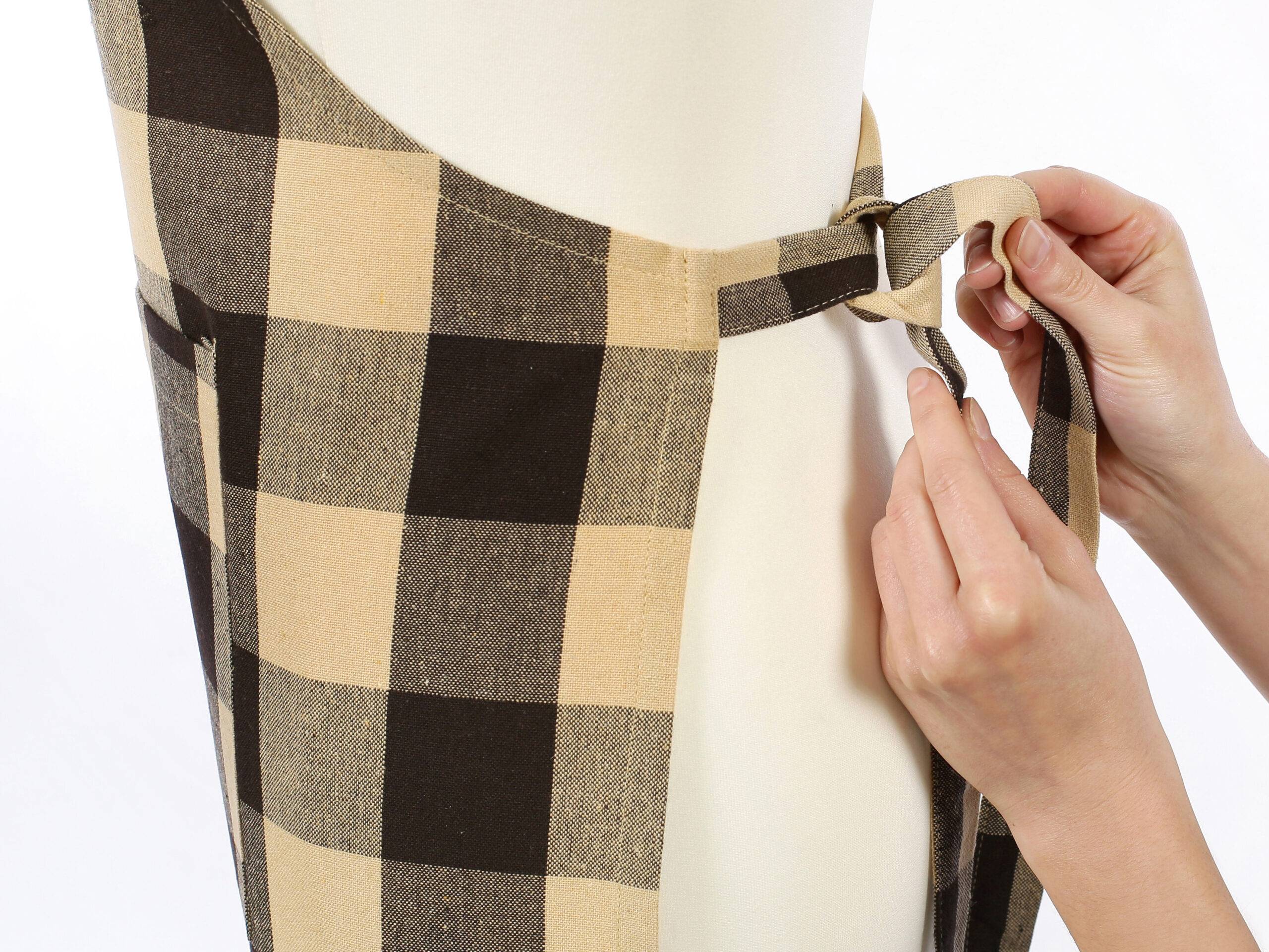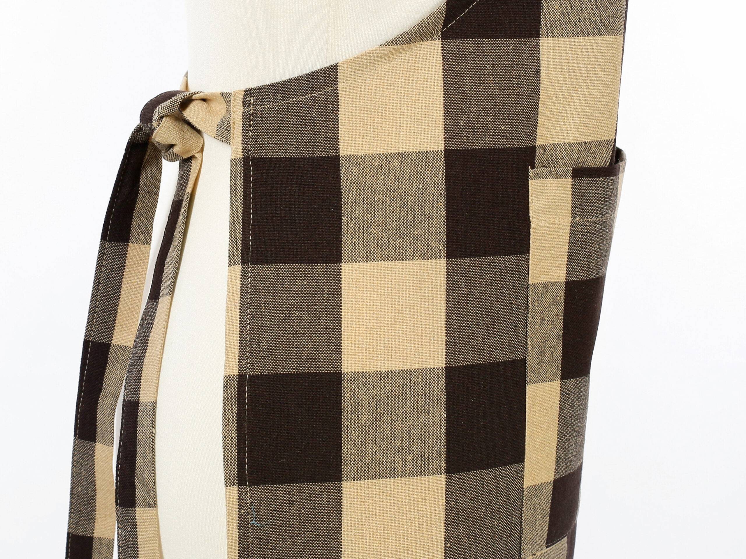 Pohodlná kuchyňská zástěra kanafas hnědo-béžové káro velké je ideální volbou do Vaší kuchyně.