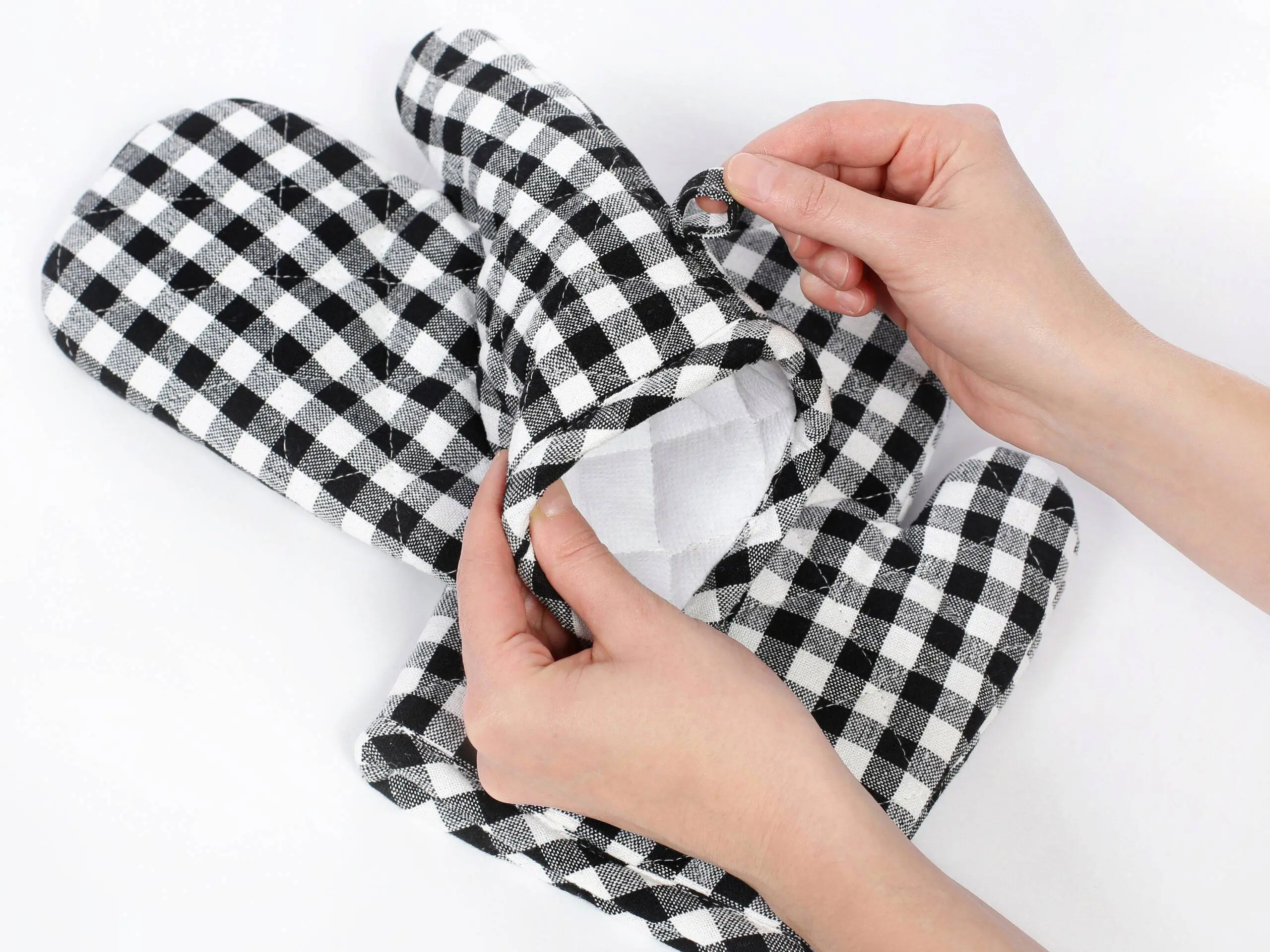 Kuchyňské chňapky jsou vyrobené ze 100% bavlny s vysokou gramáží 230 g/m² a výplní z polyesteru.