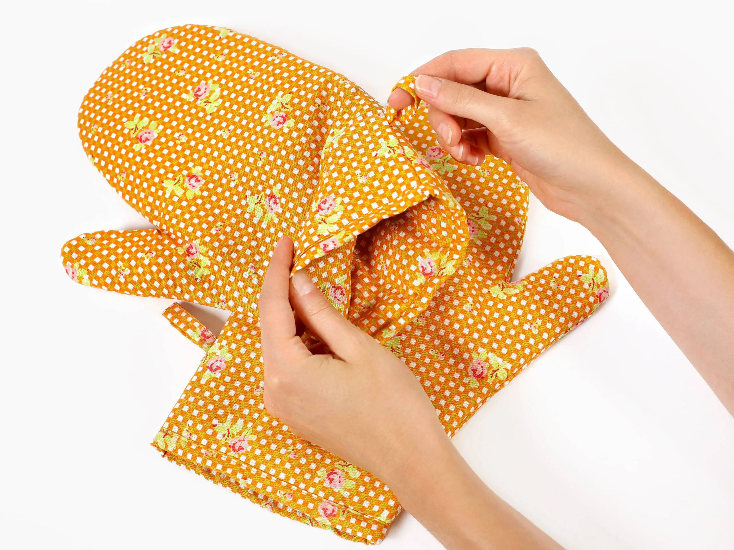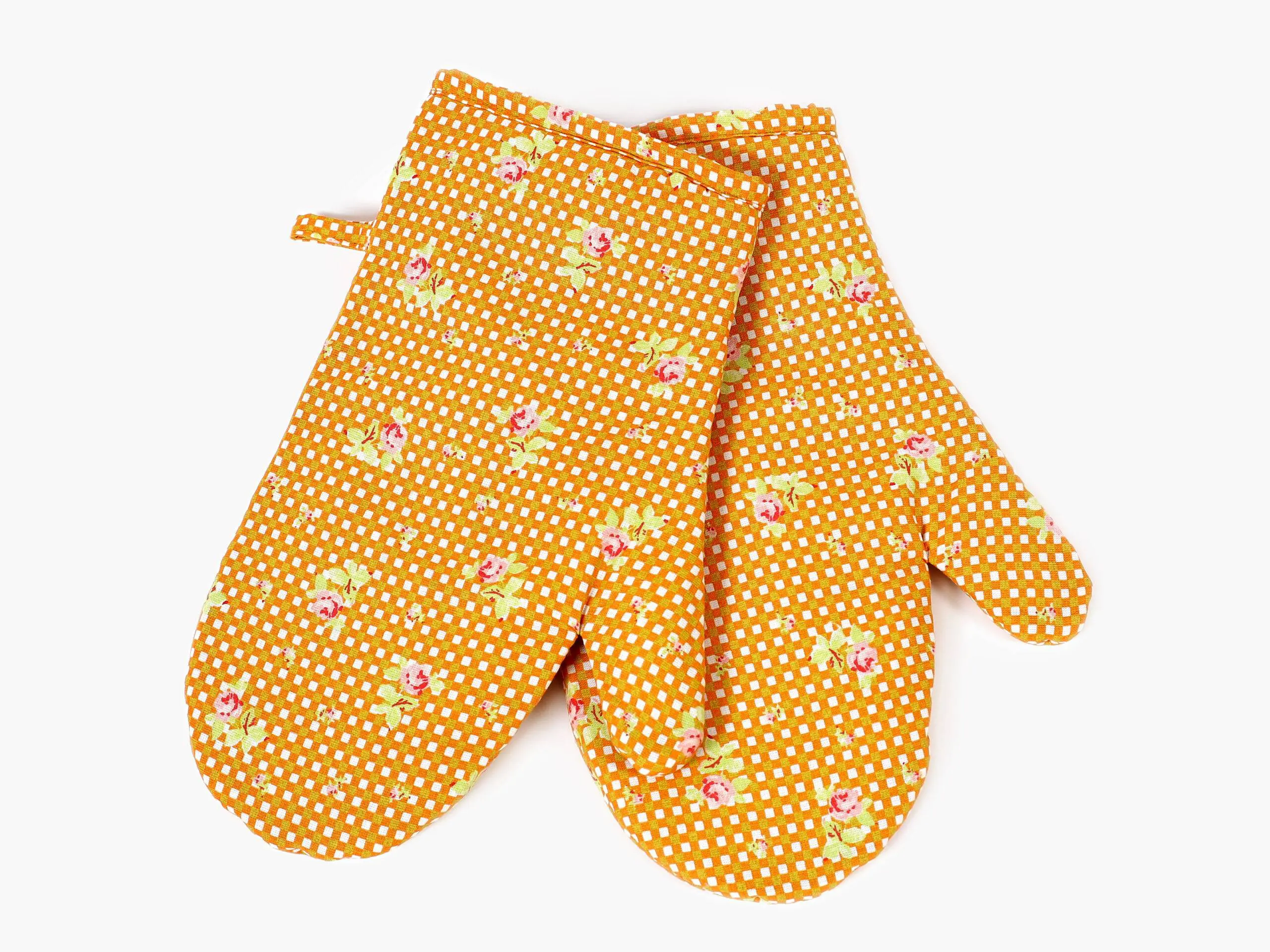 Kvalitní kuchyňské chňapky Simona růžičky na oranžové mřížce jsou ideální volbou do Vaší kuchyně.