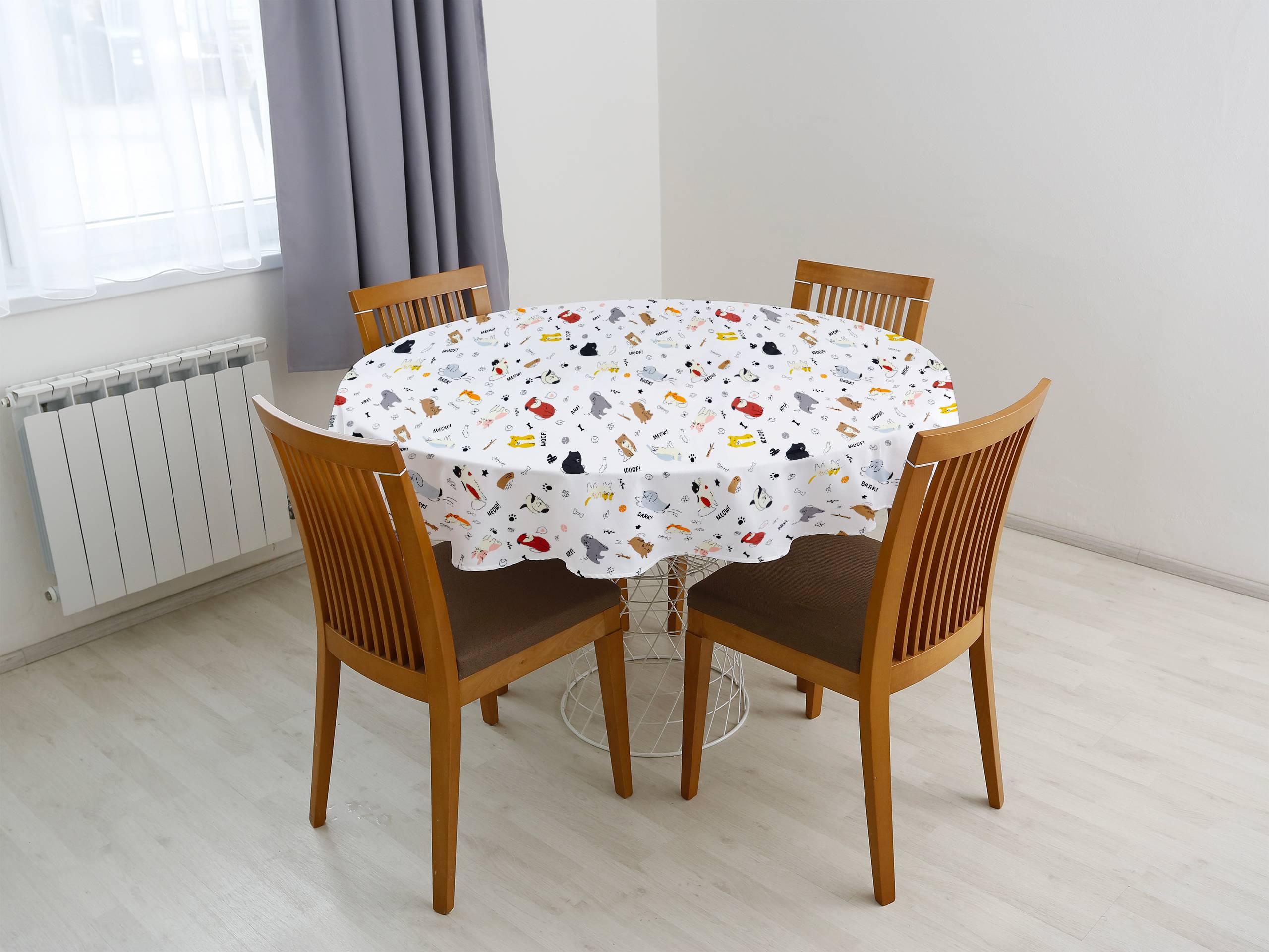 Náš kulatý bavlněný ubrus pejsci na bílé je přesně to, co oživí váš jídelní stůl a dodá mu nový nádech. Díky preciznímu provedení a 100% bavlně je tento ubrus se zvířátky nejen krásný, ale i kvalitní.