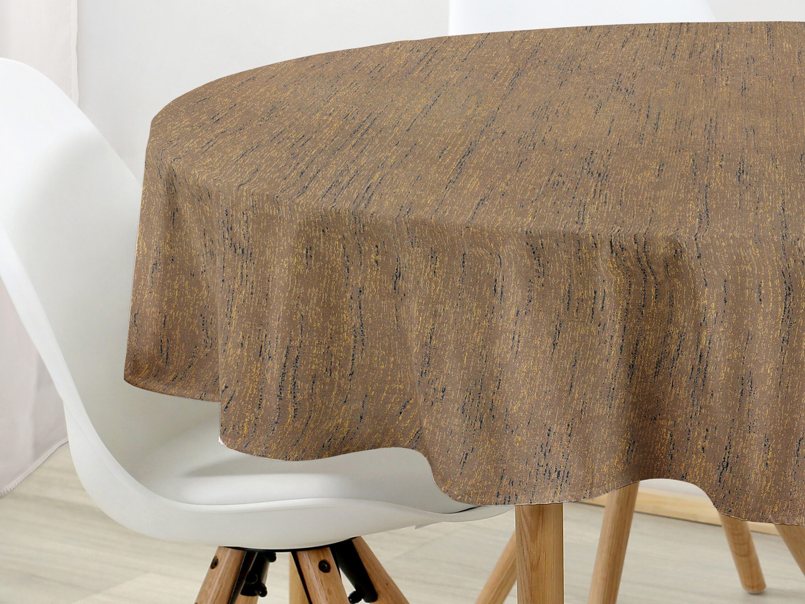 Kulatý ubrus Gold béžový se zlatou nitkou je ideální volbou pro ty, kteří hledají kombinaci elegance a funkčnosti. Dejte svému stolu šmrnc s tímto nádherným ubrusem, který je skvělým doplňkem pro každou příležitost. Skvělá investice pro váš jídelní stůl. Ubrus se skvěle hodí pro každodenní použití.