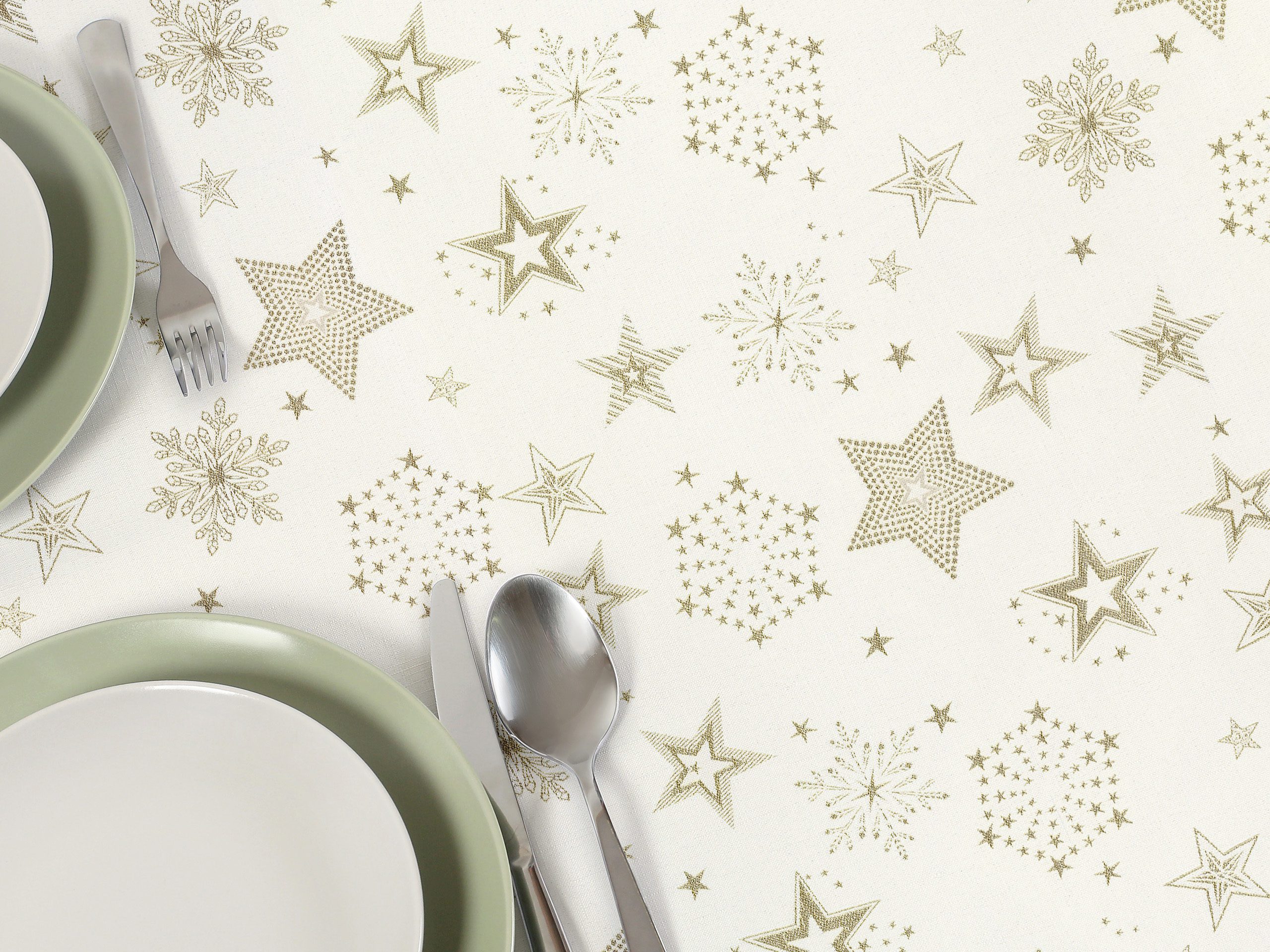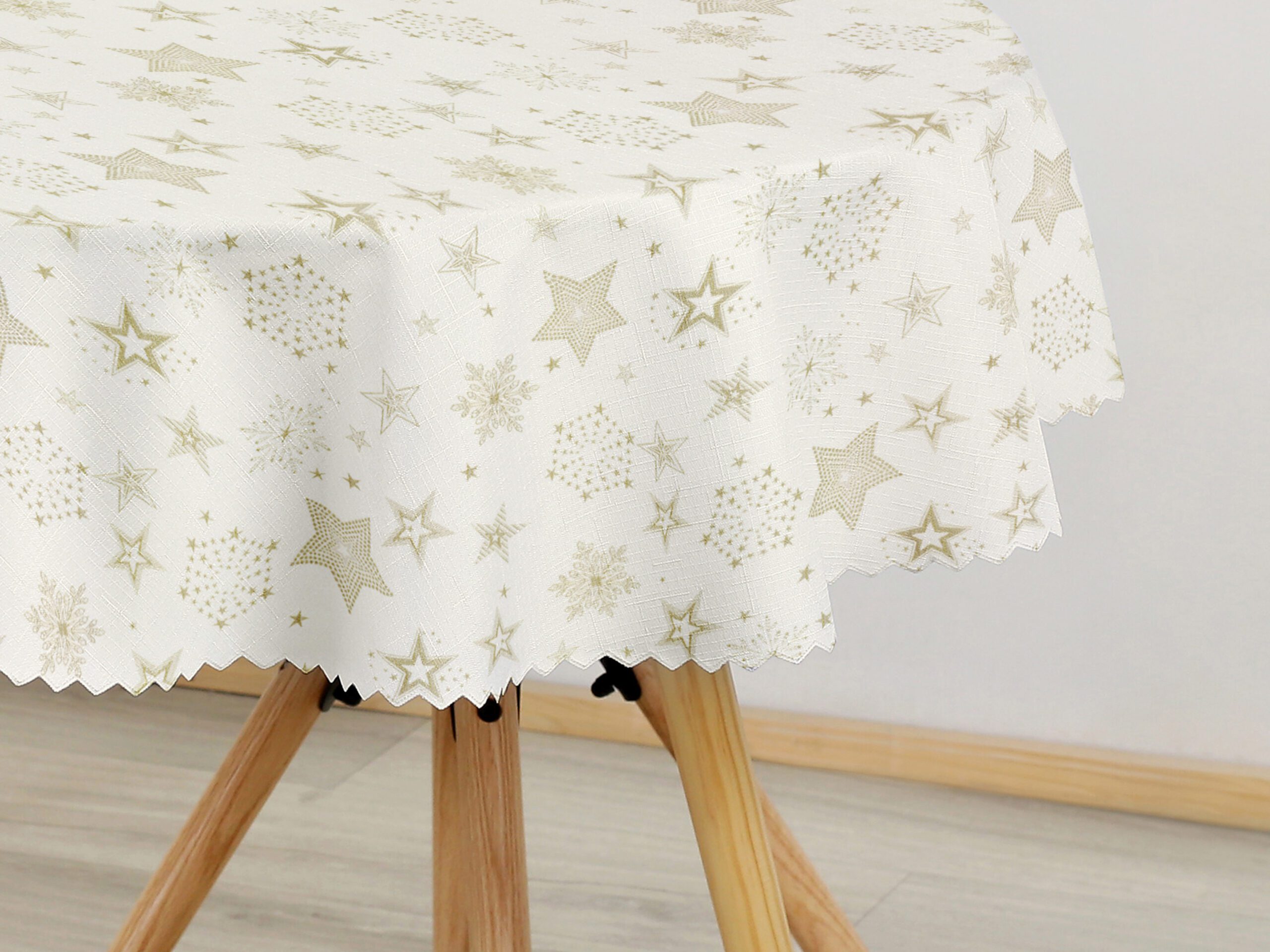 Kulatý dekorační ubrus – zlaté hvězdy na krémové