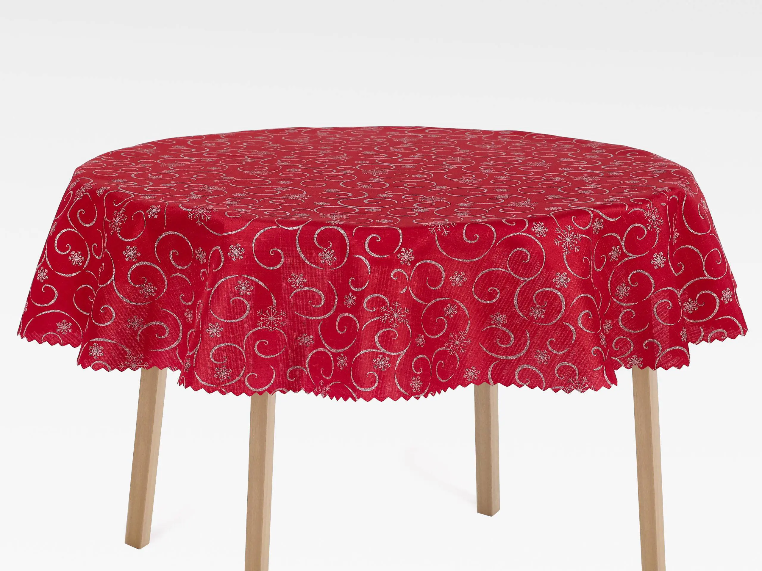 Vánoční kulatý teflonový ubrus se stříbrnými vločkami na červené je ideální volbou pro ty, kteří hledají kombinaci elegance a funkčnosti. Dejte svému vánočnímu stolu šmrnc s tímto nádherným vánočním ubrusem, který je skvělým doplňkem pro vánoční svátky. Skvělá investice pro váš jídelní stůl. Ubrus se skvěle hodí jak pro vnitřní, tak venkovní využití.