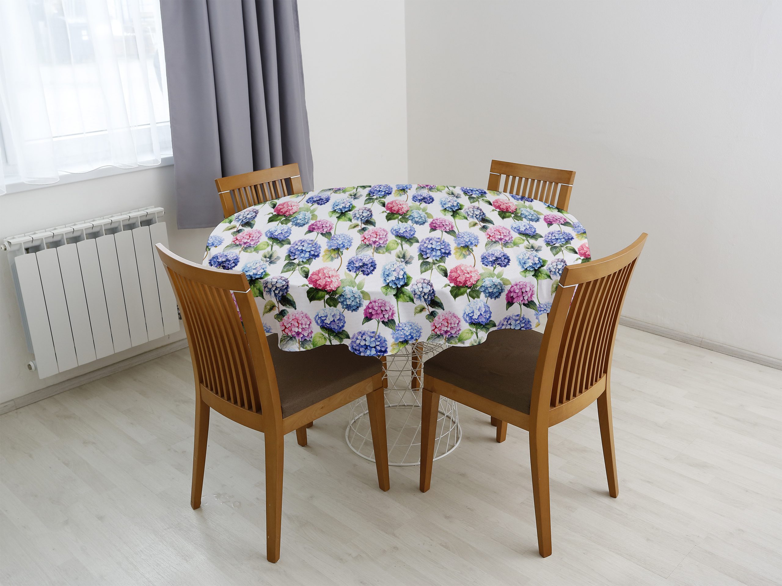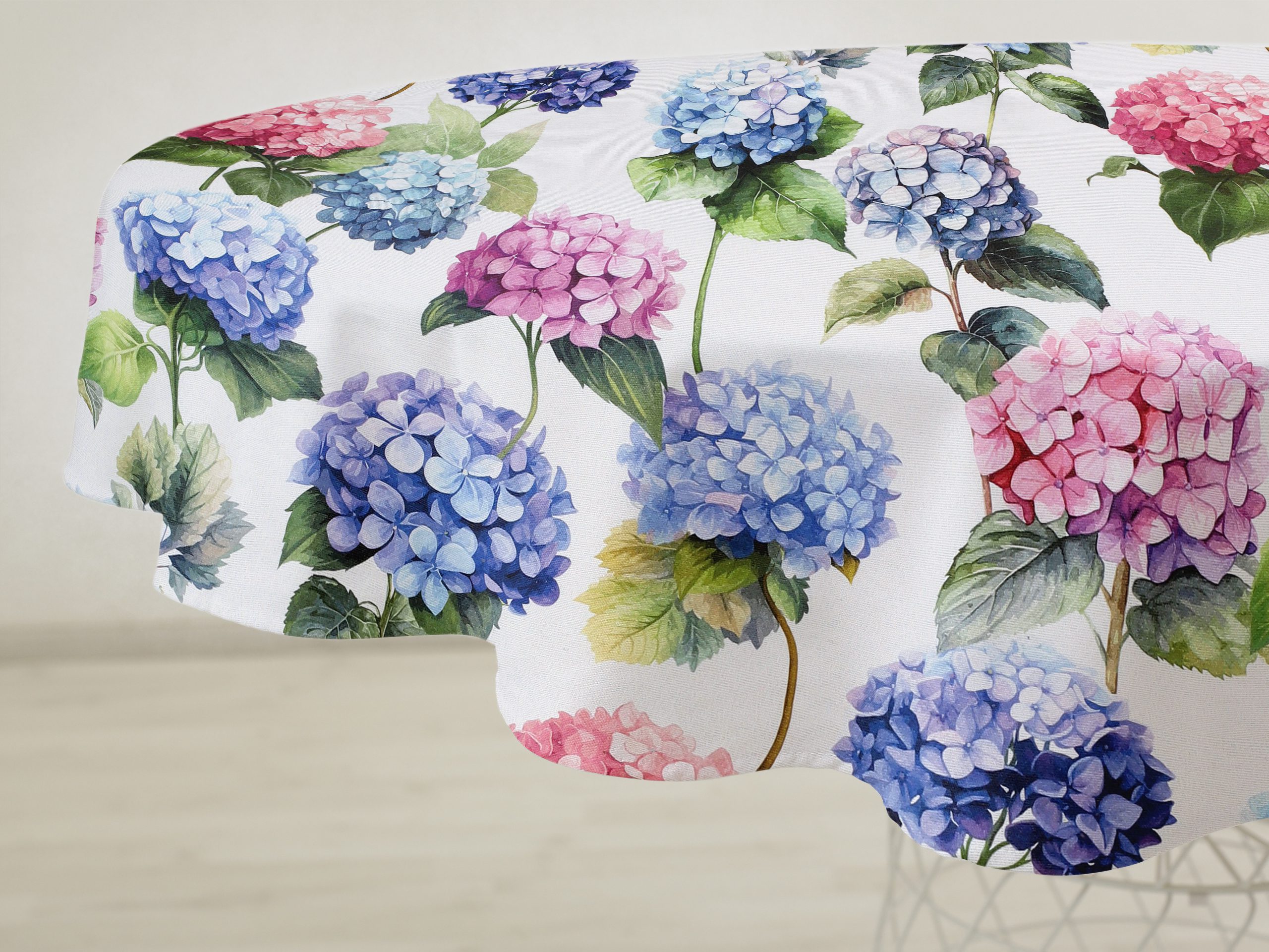 Kulatý ubrus Loneta se vzorem květů hortenzie je ideální volbou pro ty, kteří hledají kombinaci elegance a funkčnosti. Dejte svému stolu šmrnc s tímto nádherným květinovým ubrusem, který je skvělým doplňkem pro každou příležitost. Skvělá investice pro váš jídelní stůl. Ubrus se skvěle hodí pro každodenní použití.