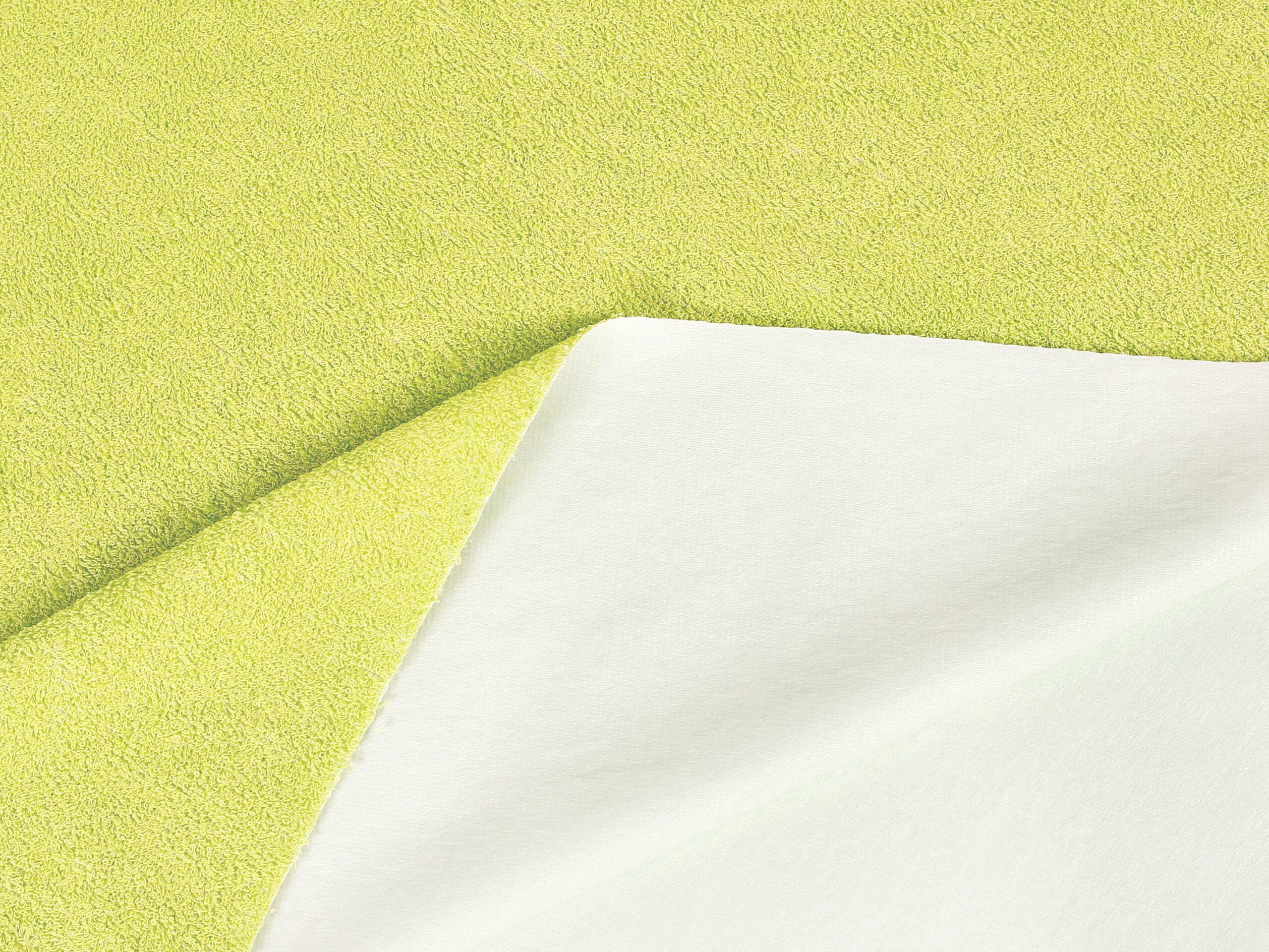 Naše Nepropustné Froté světle zelená metráž je látka, která spojuje jemnost a příjemný materiál. Navíc je odolná vůči tekutinám.