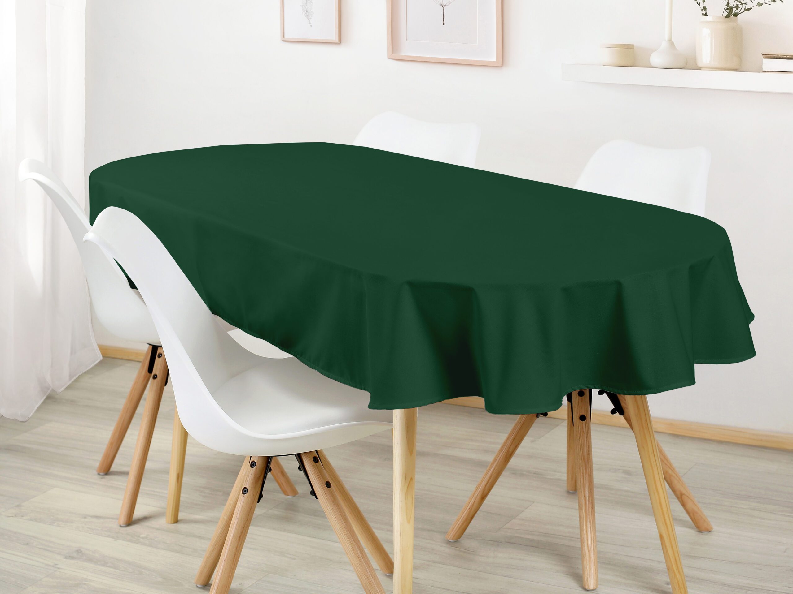 Oválný bavlněný ubrus lahvově zelený je ideální volbou pro ty, kteří hledají kombinaci elegance a funkčnosti. Dejte svému stolu šmrnc s tímto nádherným ubrusem, který je skvělým doplňkem pro každou příležitost. Skvělá investice pro váš jídelní stůl. Ubrus se skvěle hodí pro každodenní použití.
