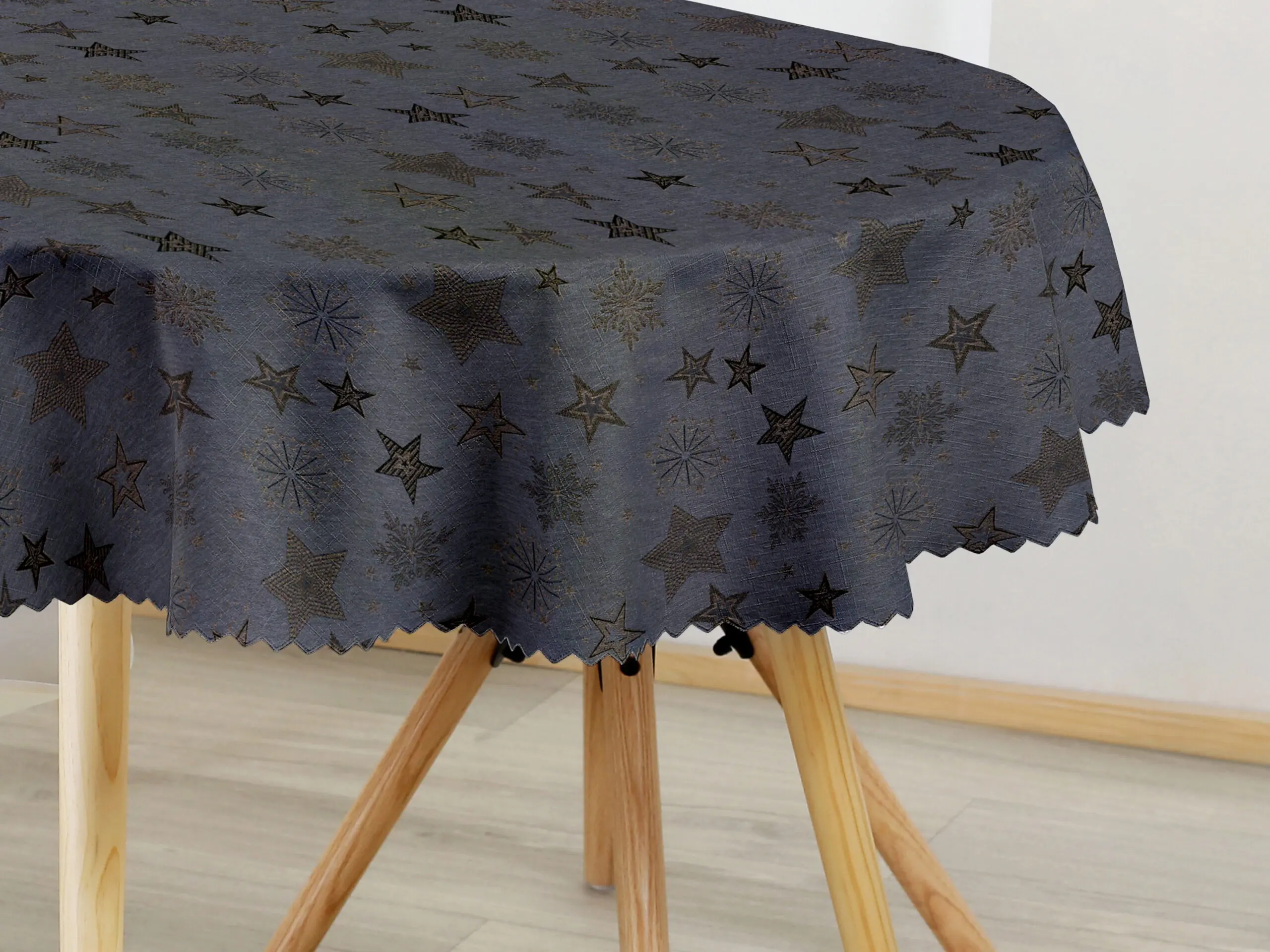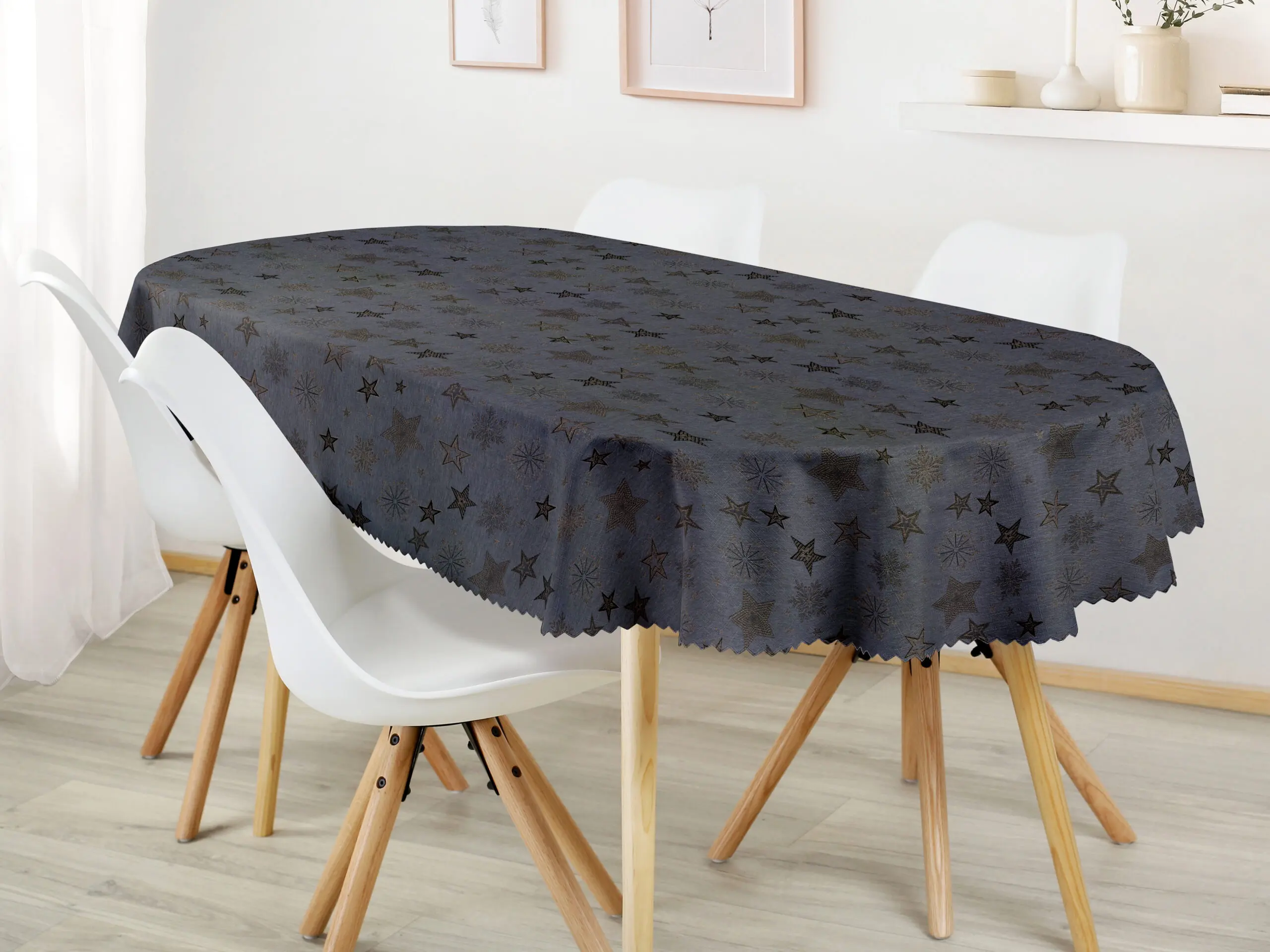 Oválný dekorační ubrus – stříbrné hvězdy na šedé