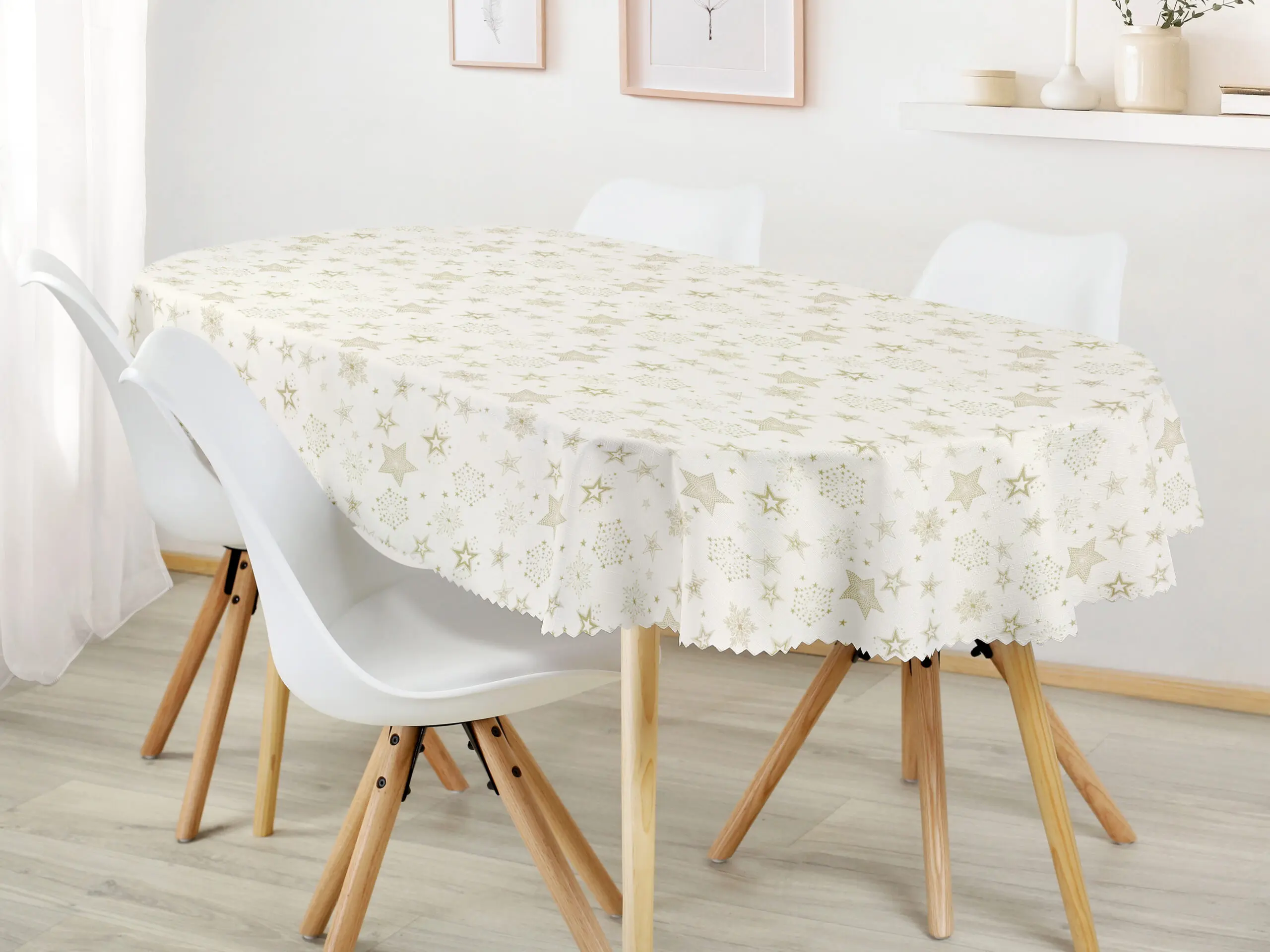 Oválný dekorační ubrus – zlaté hvězdy na krémové