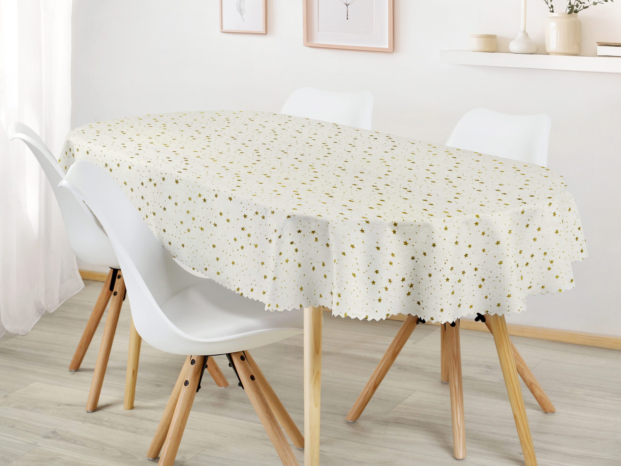 Oválný dekorační ubrus – zlaté hvězdy na režné