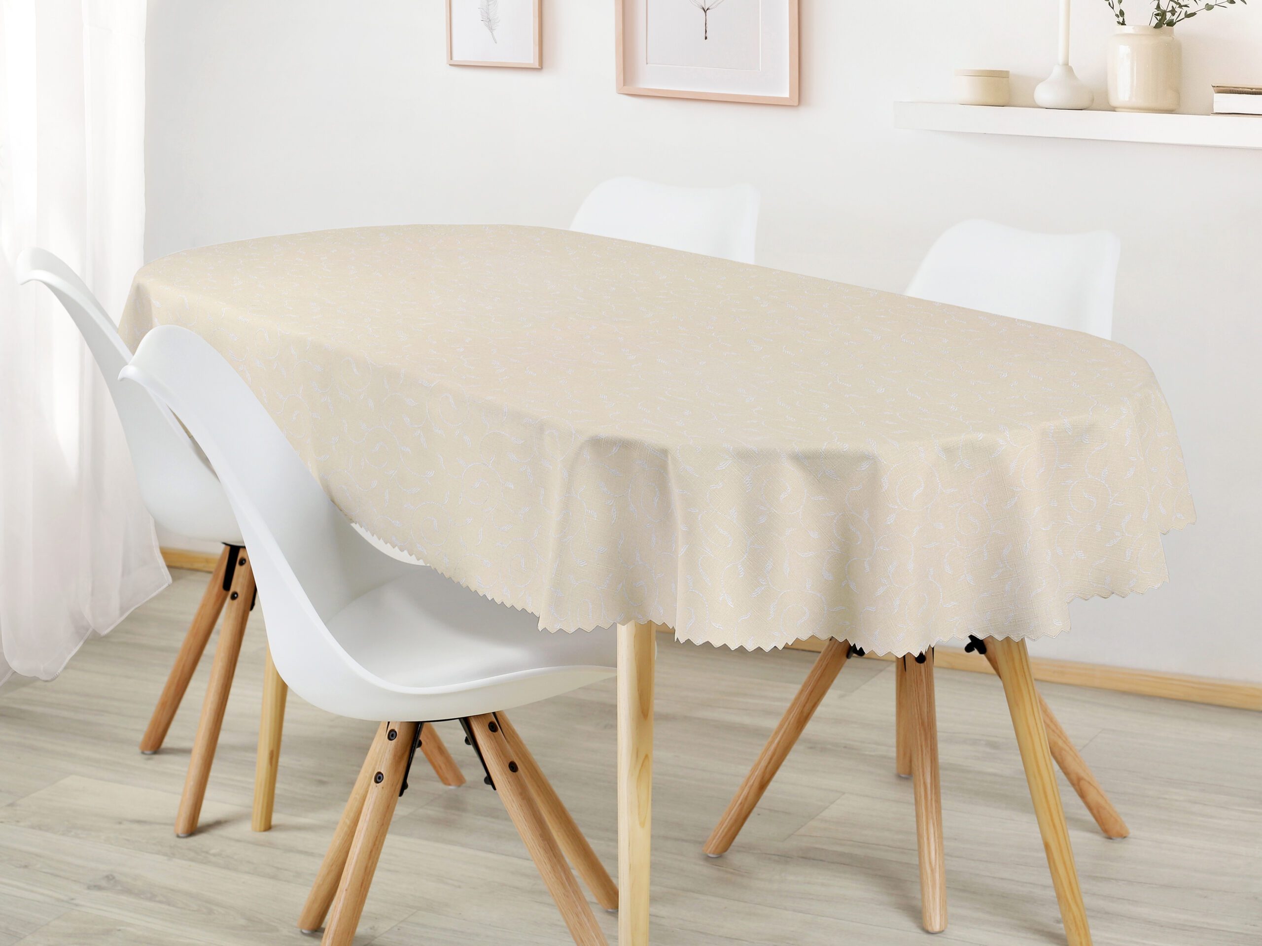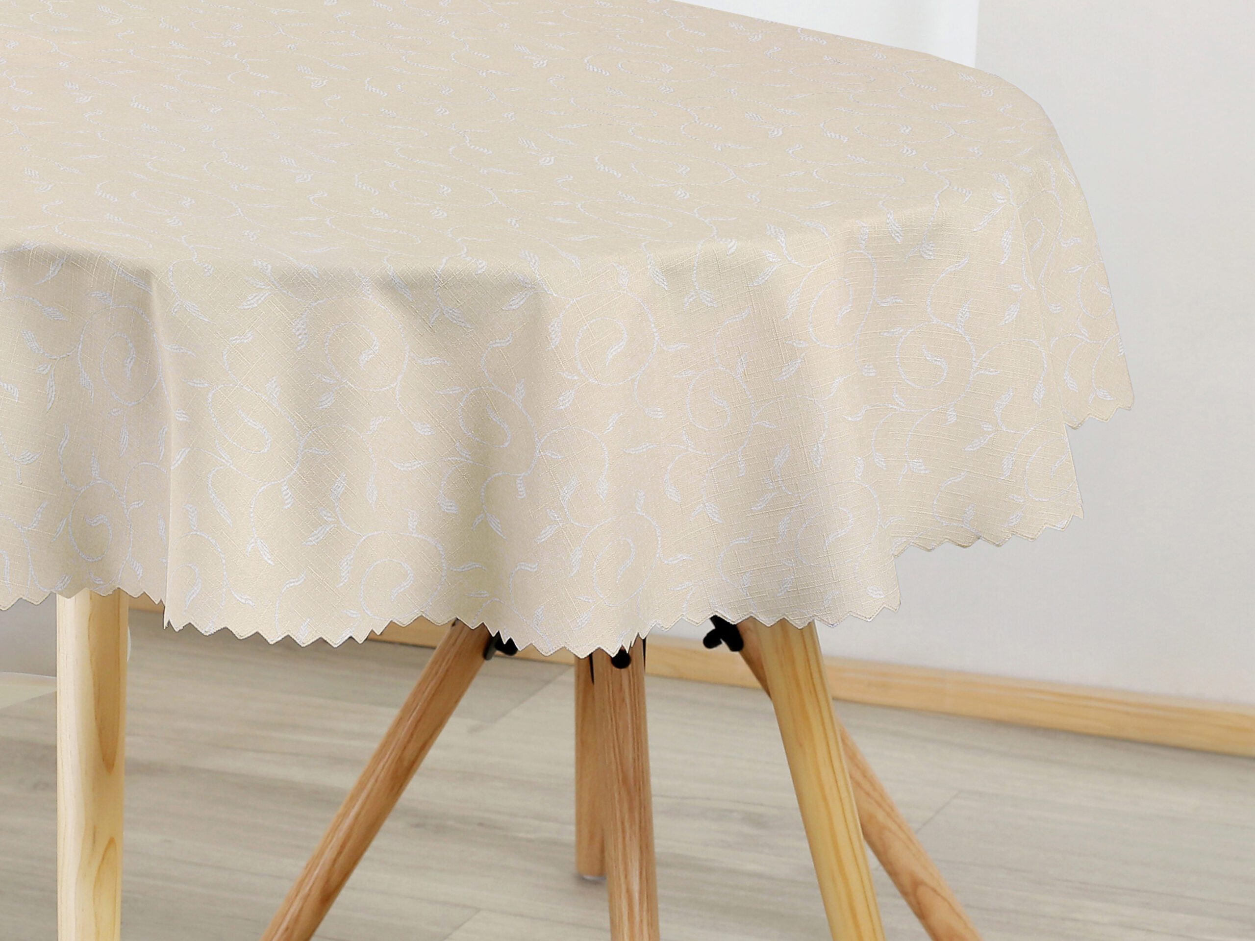 - 100% polyester: Tento béžový ubrus je vyroben z pevného a odolného polyesteru, který vydrží dlouhé roky.