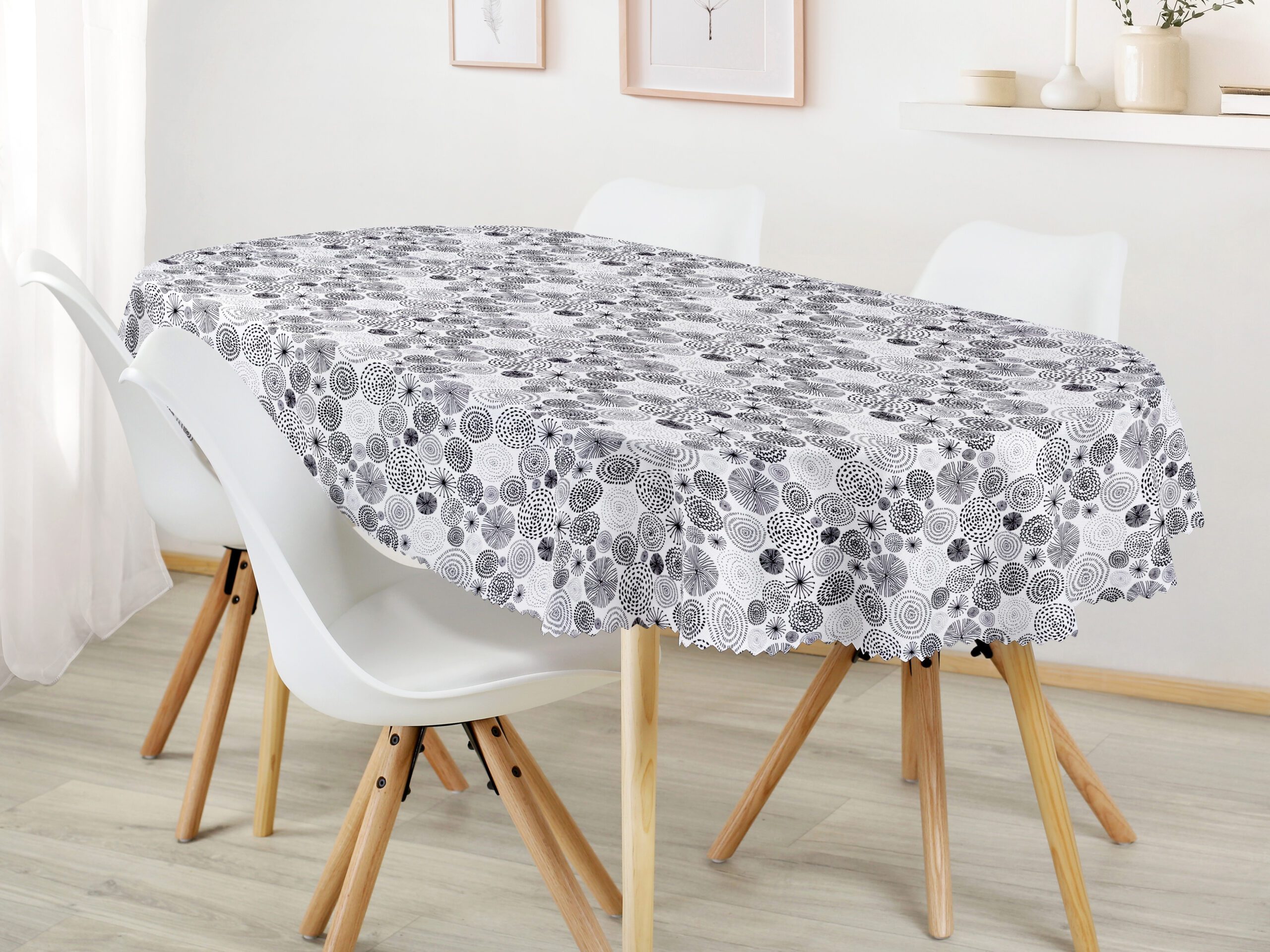 Oválný teflonový ubrus černý kruh na bílé je ideální volbou pro ty, kteří hledají kombinaci elegance a funkčnosti. Dejte svému stolu šmrnc s tímto nádherným moderním ubrusem, který je skvělým doplňkem pro každou příležitost. Skvělá investice pro váš jídelní stůl. Ubrus se skvěle hodí jak pro vnitřní, tak venkovní využití.
