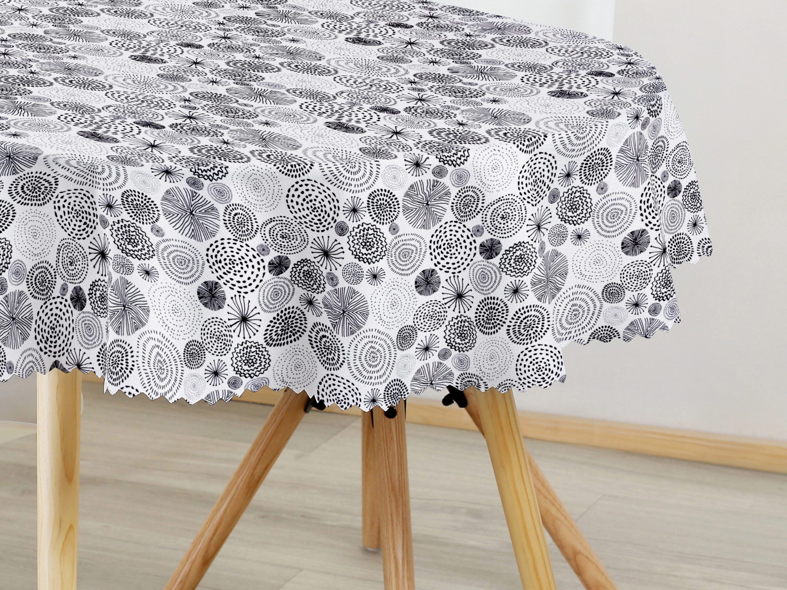 Náš oválný teflonový ubrus černý kruh na bílé je přesně to, co oživí váš jídelní stůl a dodá mu nový šarm díky krásnému modernímu vzoru. Díky kvalitnímu provedení a použitému polyesteru je tento ubrus nejen krásný, ale i odolný. Všechny skvrny a vylité tekutiny snadno setřete hadříkem.