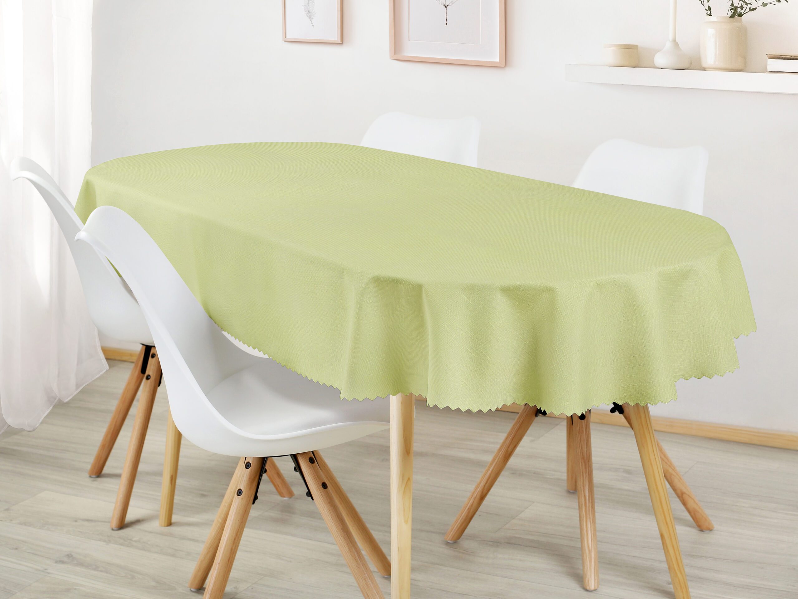 Oválný teflonový ubrus pistáciový je ideální volbou pro ty, kteří hledají kombinaci elegance a funkčnosti. Dejte svému stolu šmrnc s tímto nádherným jednobarevným ubrusem, který je skvělým doplňkem pro každou příležitost. Skvělá investice pro váš jídelní stůl. Ubrus se skvěle hodí jak pro vnitřní, tak venkovní využití.