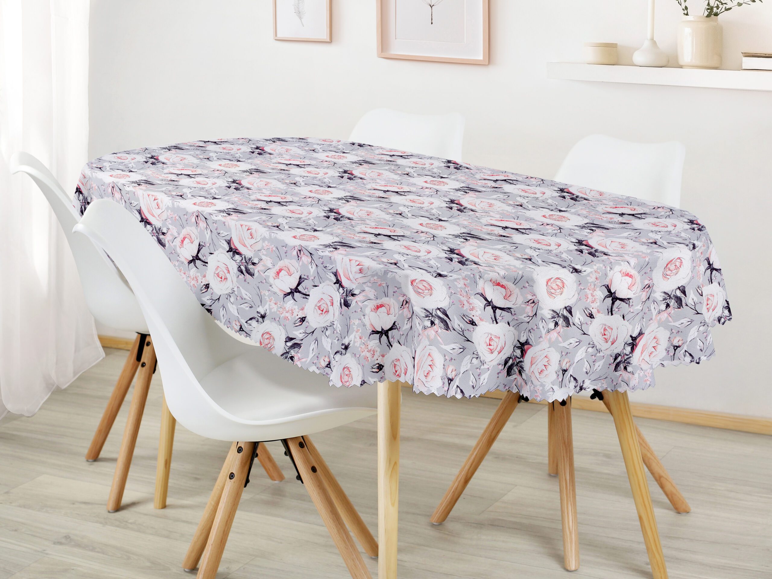 Oválný teflonový ubrus růže na šedé je ideální volbou pro ty, kteří hledají kombinaci elegance a funkčnosti. Dejte svému stolu šmrnc s tímto nádherným květinovým ubrusem, který je skvělým doplňkem pro každou příležitost. Skvělá investice pro váš jídelní stůl. Ubrus se skvěle hodí jak pro vnitřní, tak venkovní využití.