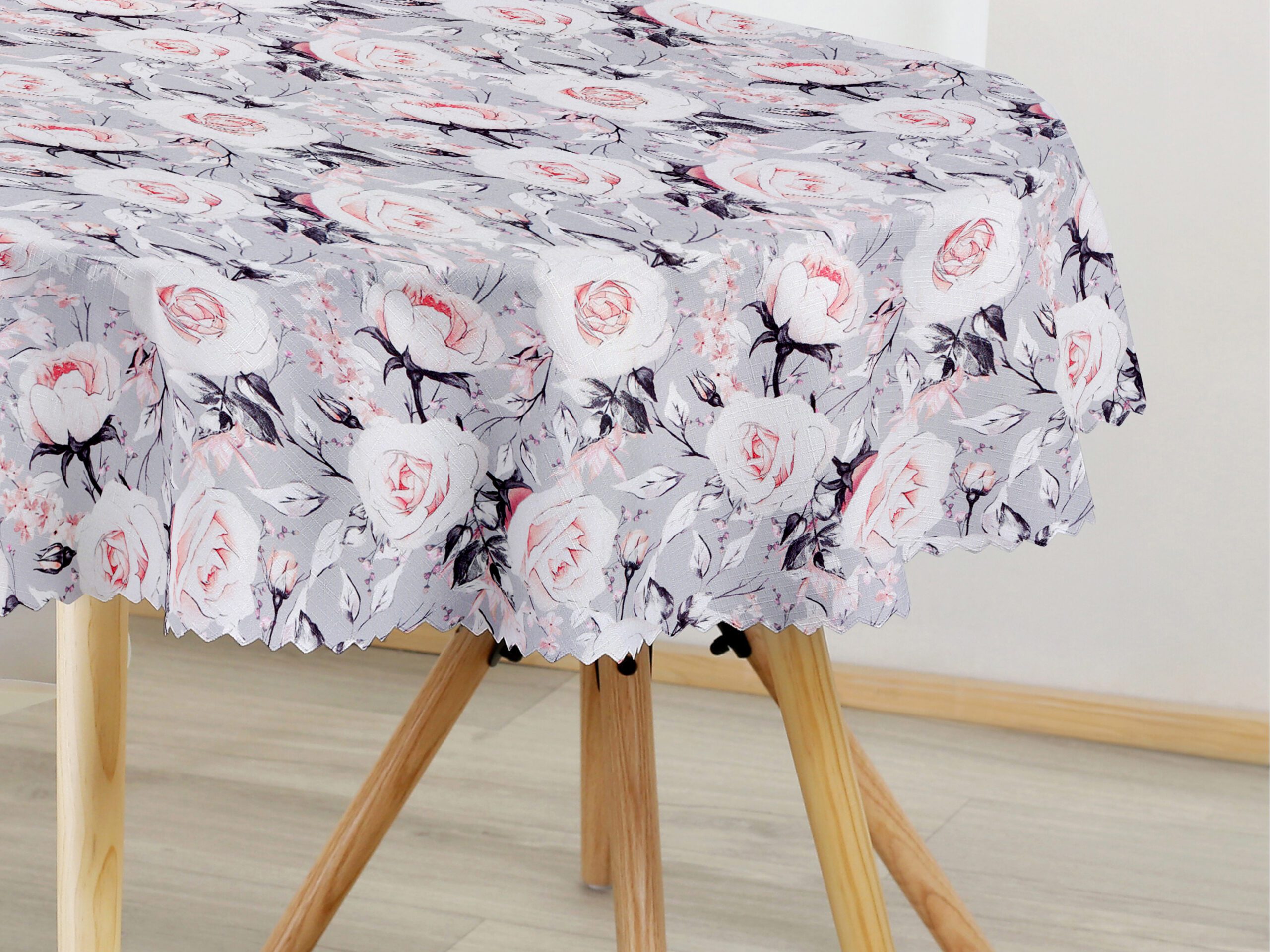 - 100% polyester: Tento šedý ubrus se vzorem růží je vyroben z pevného a odolného polyesteru, který vydrží dlouhé roky.