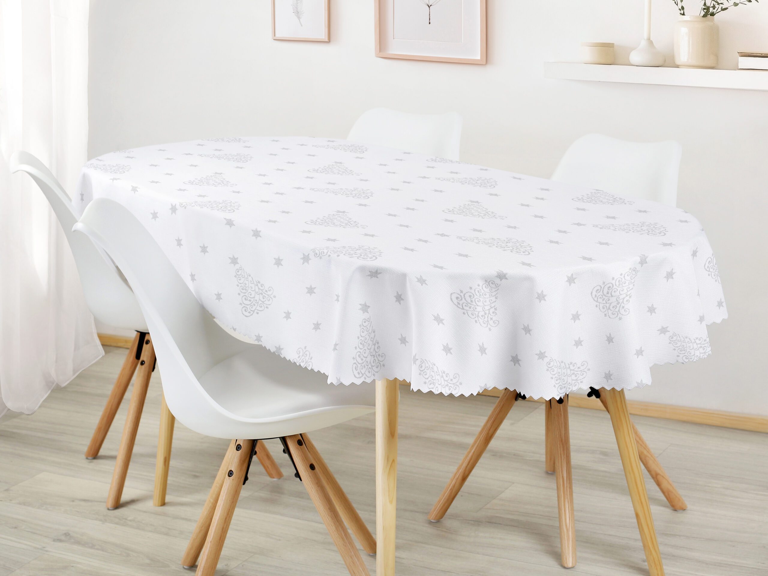 Vánoční oválný teflonový ubrus se vzorem stříbrných stromečků je ideální volbou pro ty, kteří hledají kombinaci elegance a funkčnosti. Dejte svému vánočnímu stolu šmrnc s tímto nádherným vánočním ubrusem, který je skvělým doplňkem pro vánoční svátky. Skvělá investice pro váš jídelní stůl. Ubrus se skvěle hodí jak pro vnitřní, tak venkovní využití.