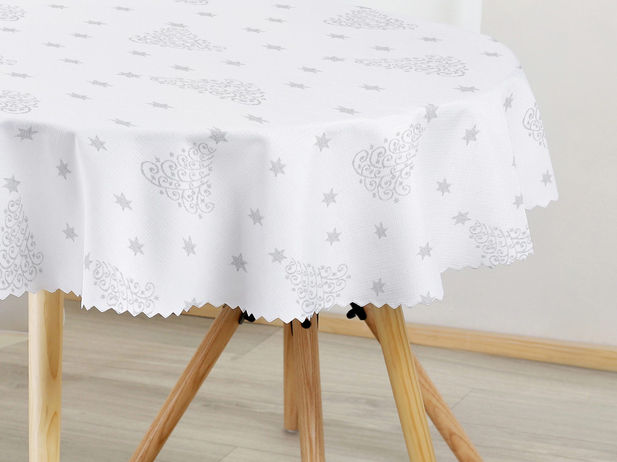 - 100% polyester: Tento bílý ubrus se vzorem stromečků je vyroben z pevného a odolného polyesteru, který vydrží dlouhé roky.