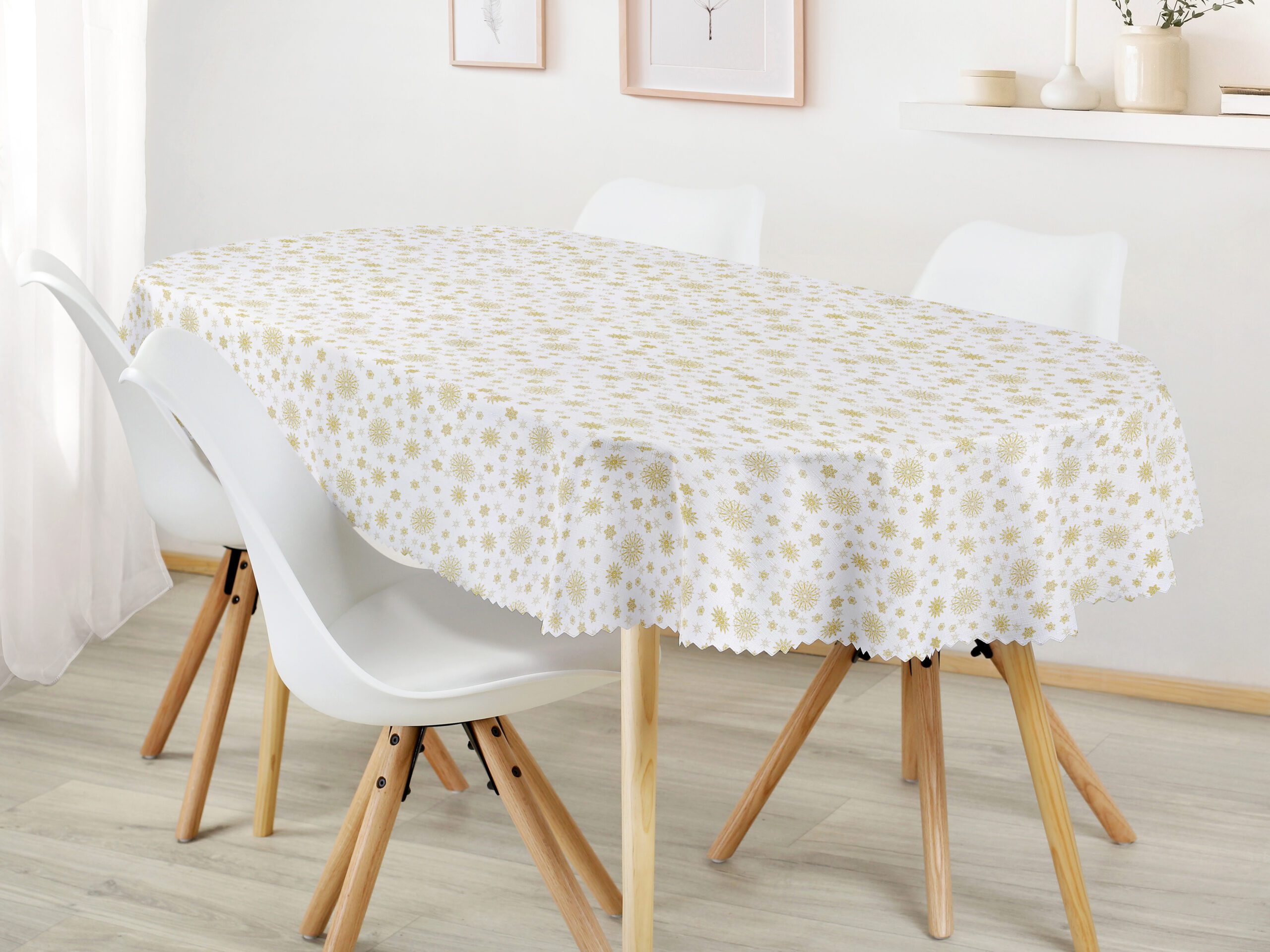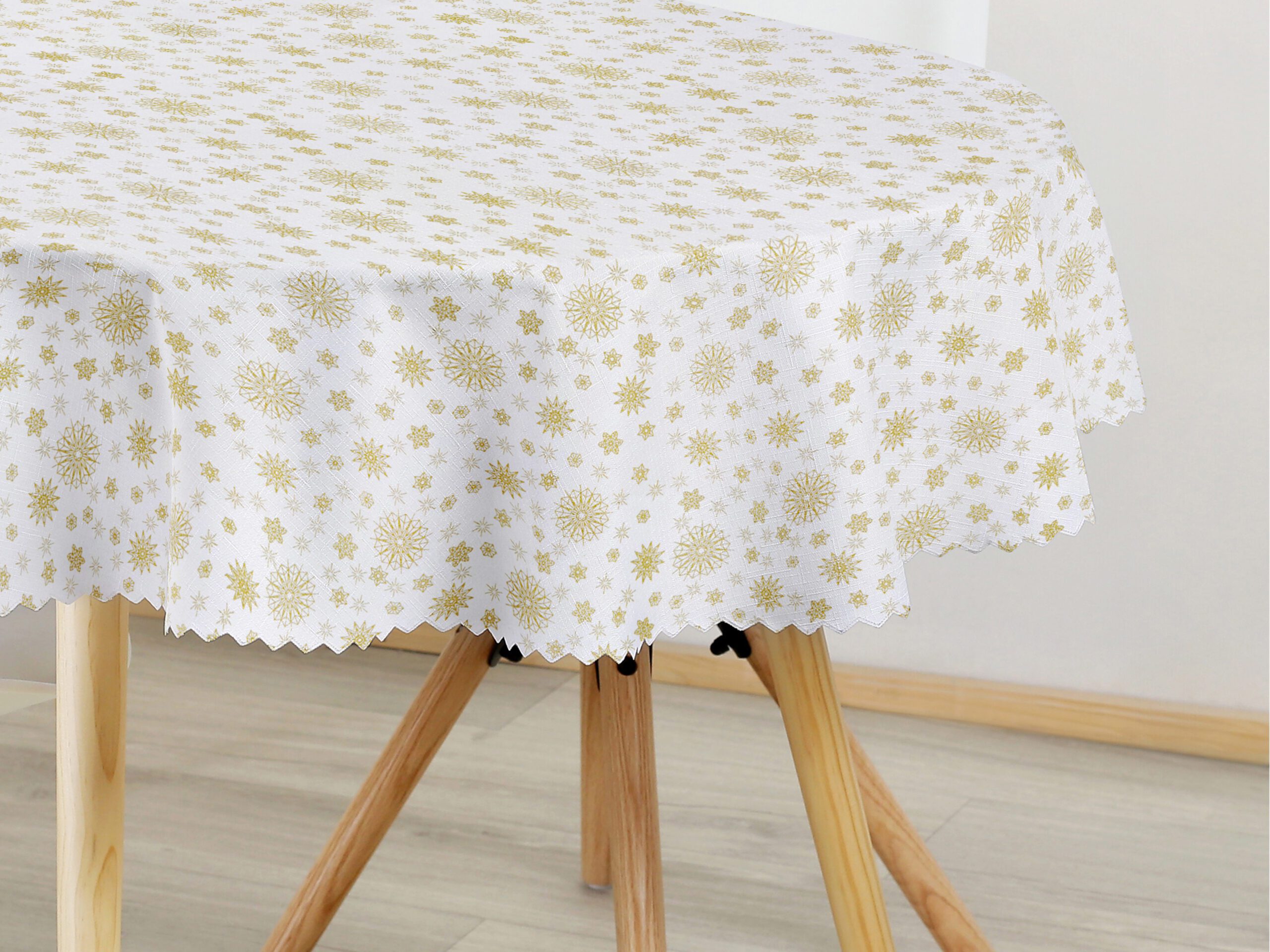 Náš oválný teflonový ubrus zlaté vločky a hvězdičky je přesně to, co oživí váš jídelní stůl během Vánoc a dodá mu nový šarm díky krásnému vánočnímu vzoru. Díky kvalitnímu provedení a použitému polyesteru je tento ubrus nejen krásný, ale i odolný. Všechny skvrny a vylité tekutiny snadno setřete hadříkem.