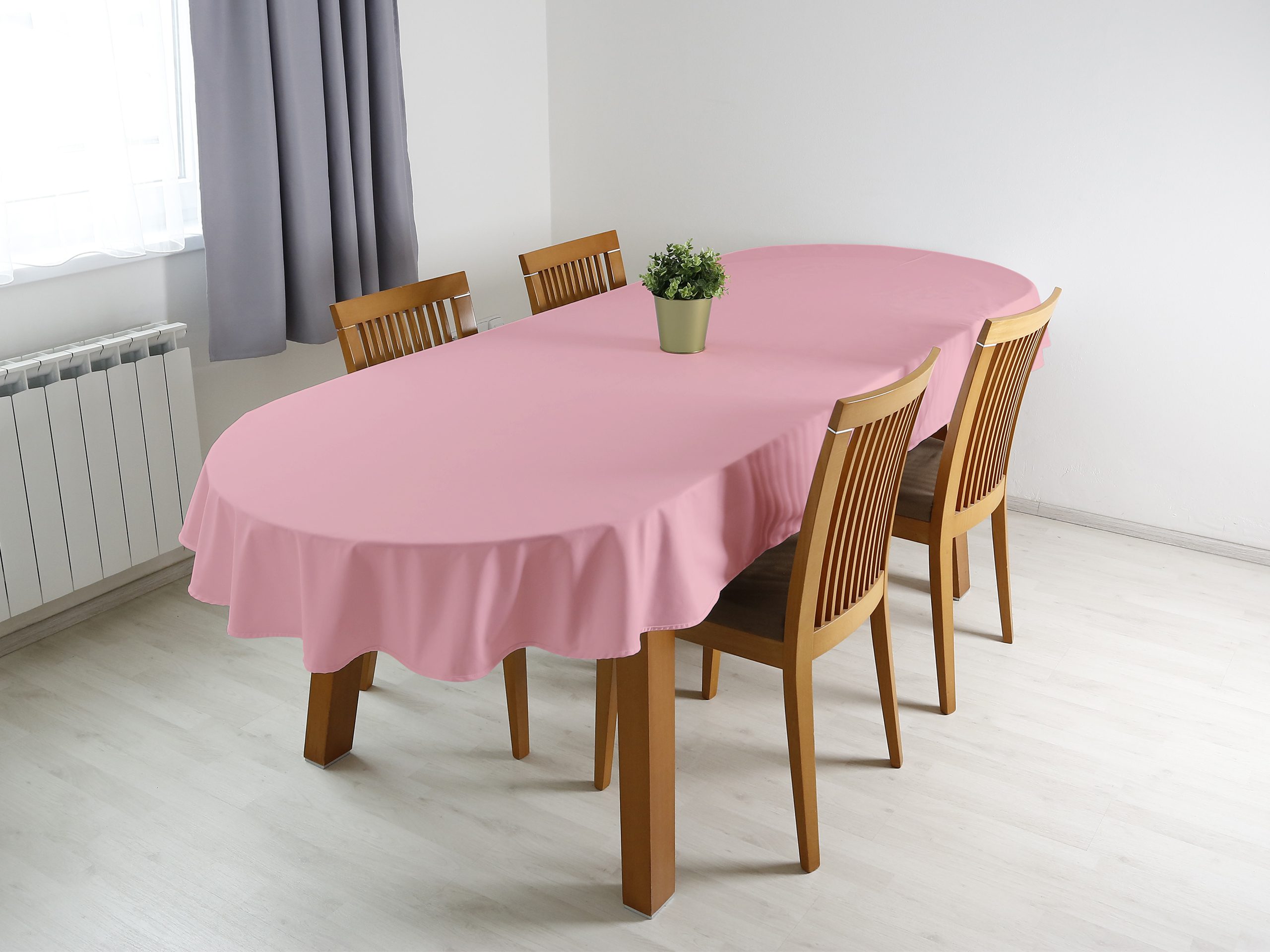 Oválný ubrus Loneta růžový je ideální volbou pro ty, kteří hledají kombinaci elegance a funkčnosti. Dejte svému stolu šmrnc s tímto nádherným ubrusem, který je skvělým doplňkem pro každou příležitost. Skvělá investice pro váš jídelní stůl. Ubrus se skvěle hodí pro každodenní použití.
