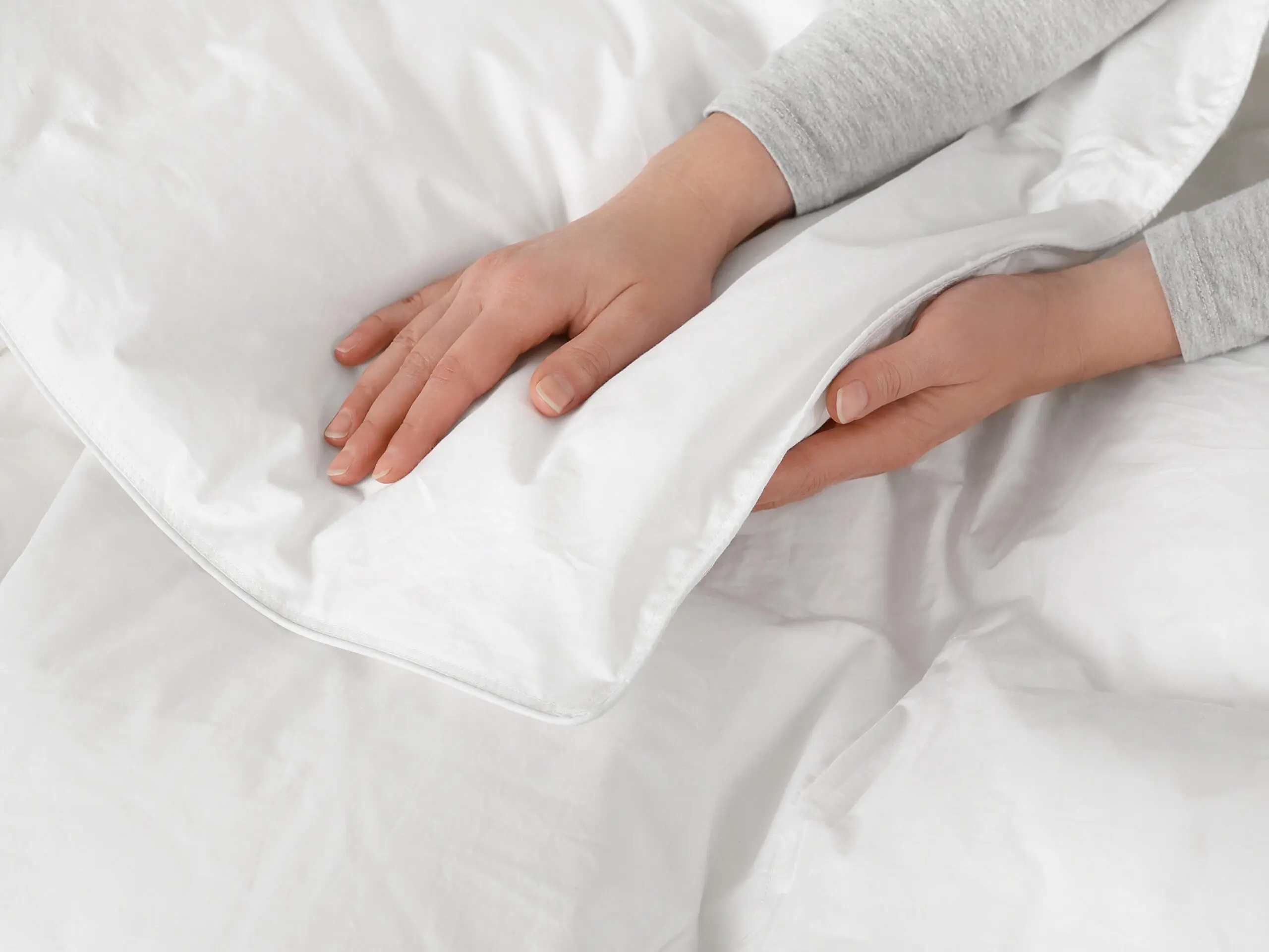Výplň tvoří 20 % husího prachového peří a 80 % husího peří o celkové hmotnosti 2000 g. Prachové peří zajišťuje měkkost, nadýchanost a schopnost udržet teplo při nízké hmotnosti, zatímco husí peří dodává přikrývce potřebný objem, stabilitu a dlouhou životnost. Potah ze 100% bavlny je prodyšný, jemný na dotek a hustě tkaný, aby zabránil úniku výplně a podpořil hygienické prostředí.