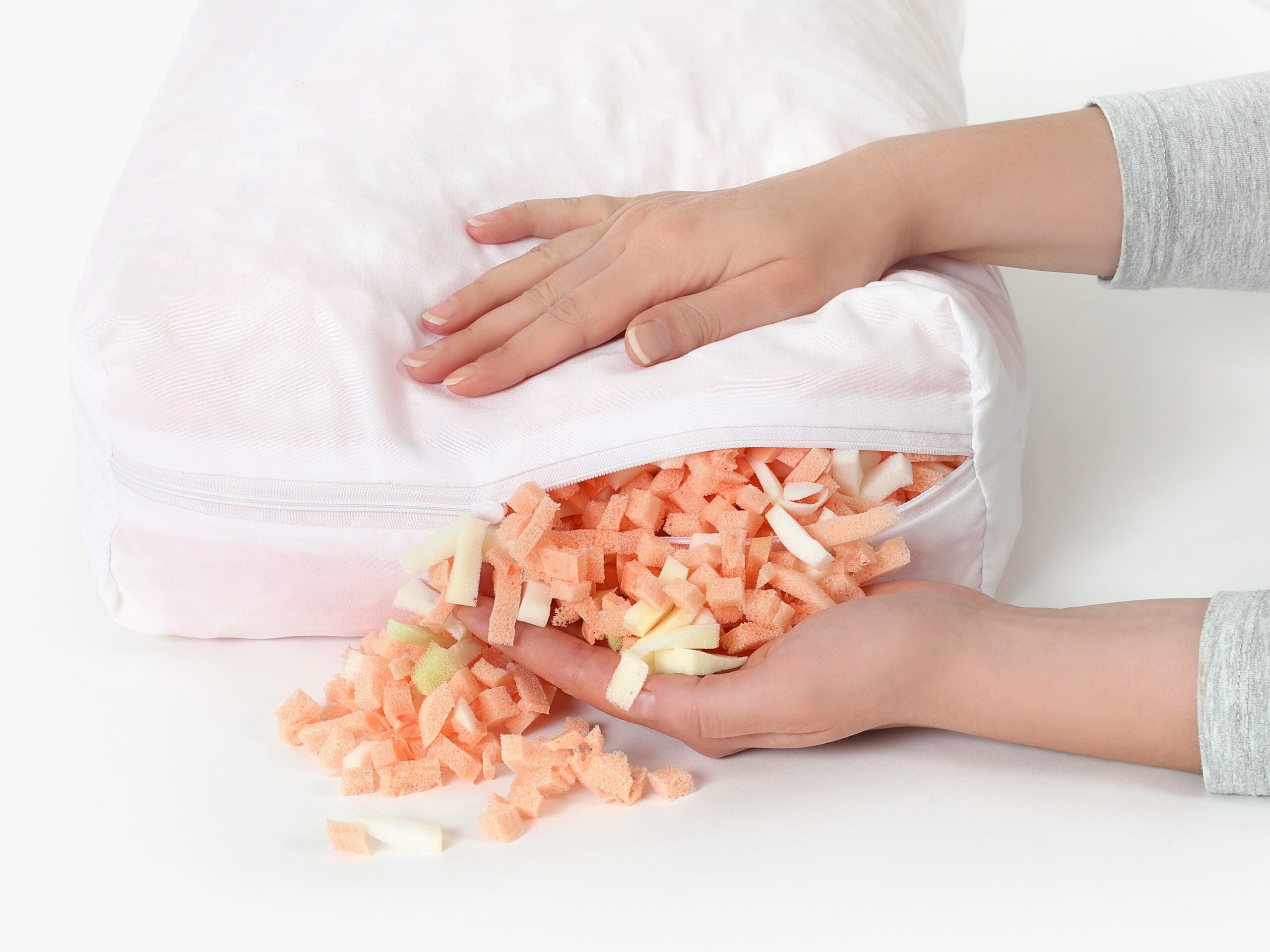 Hlavní výhodou tohoto anatomického polštáře je možnost si individuálně upravit objem polštáře z řezané líné pěny. Vnitřní povlak se zipem umožňuje snadné odebírání nebo doplňování materiálu, čímž si přesně upravíte objem a tuhost podle vlastních potřeb.