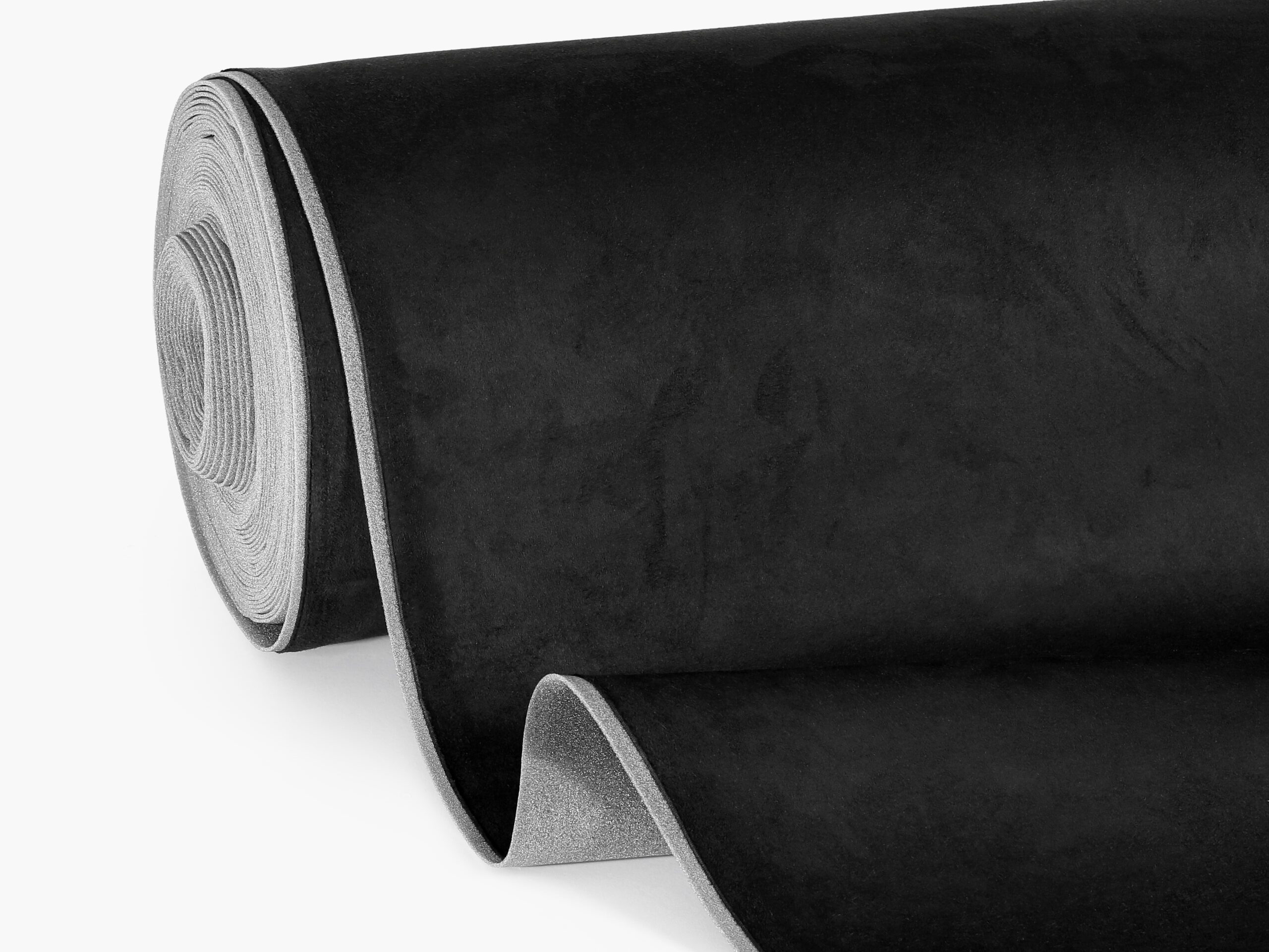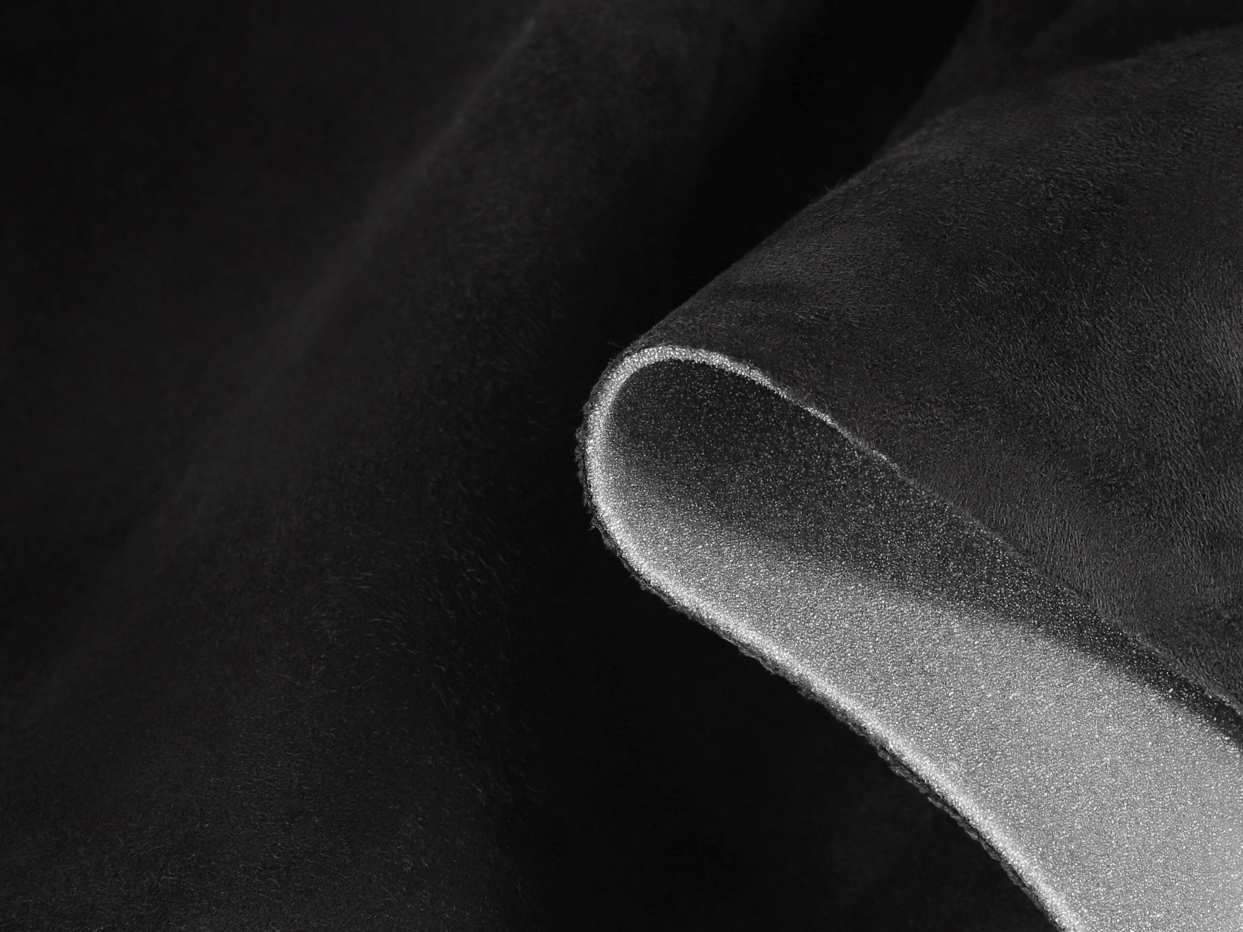 Potahová látka imitace kůže Alcantara v černé barvě je určena pro čalounické a dekorační účely.
