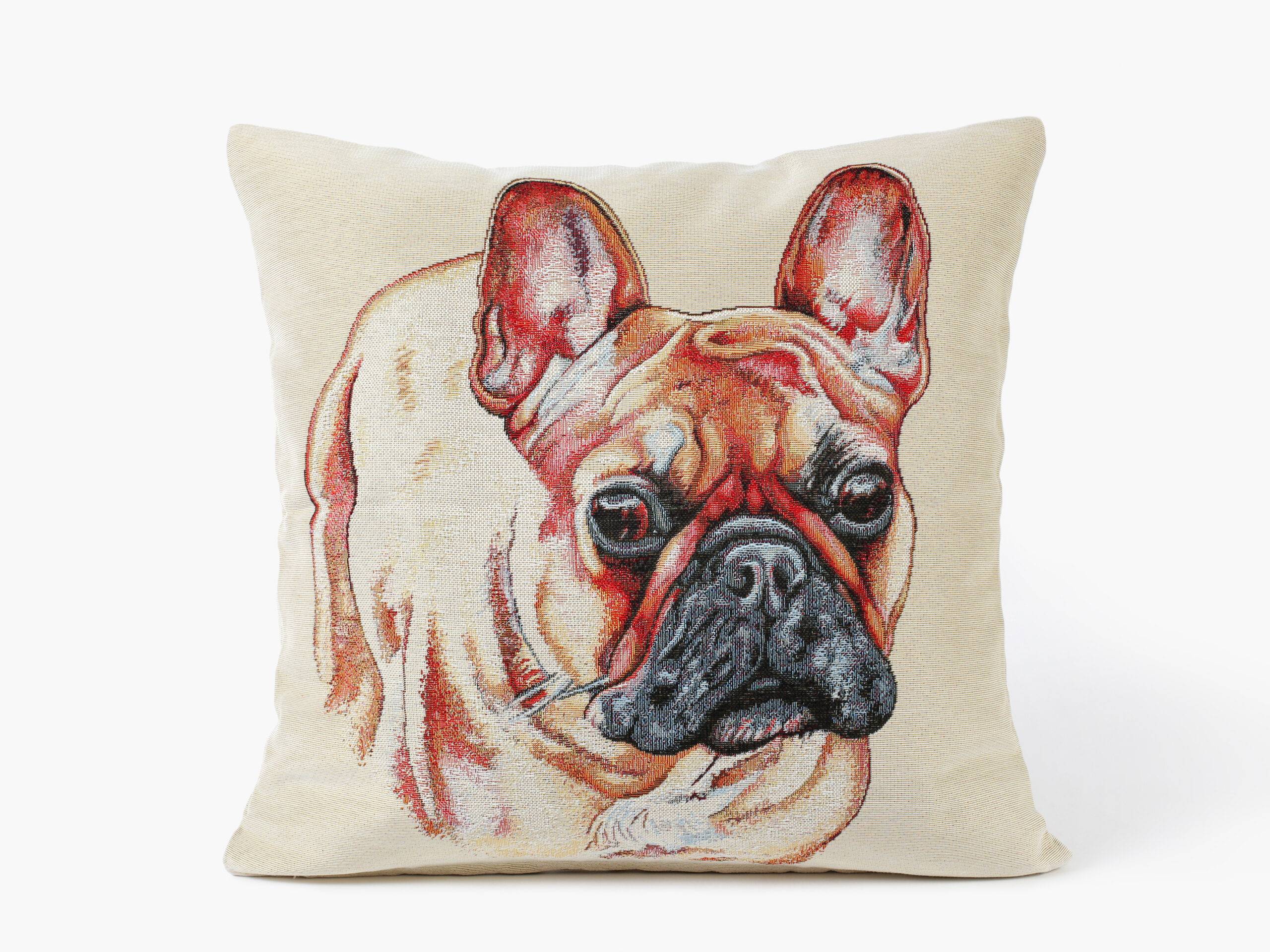 Příjemný a luxusní povlak Gobelín obdaří váš polštář krásným vzorem s portrétem buldoka. Povlak má praktické zapínání na zip.