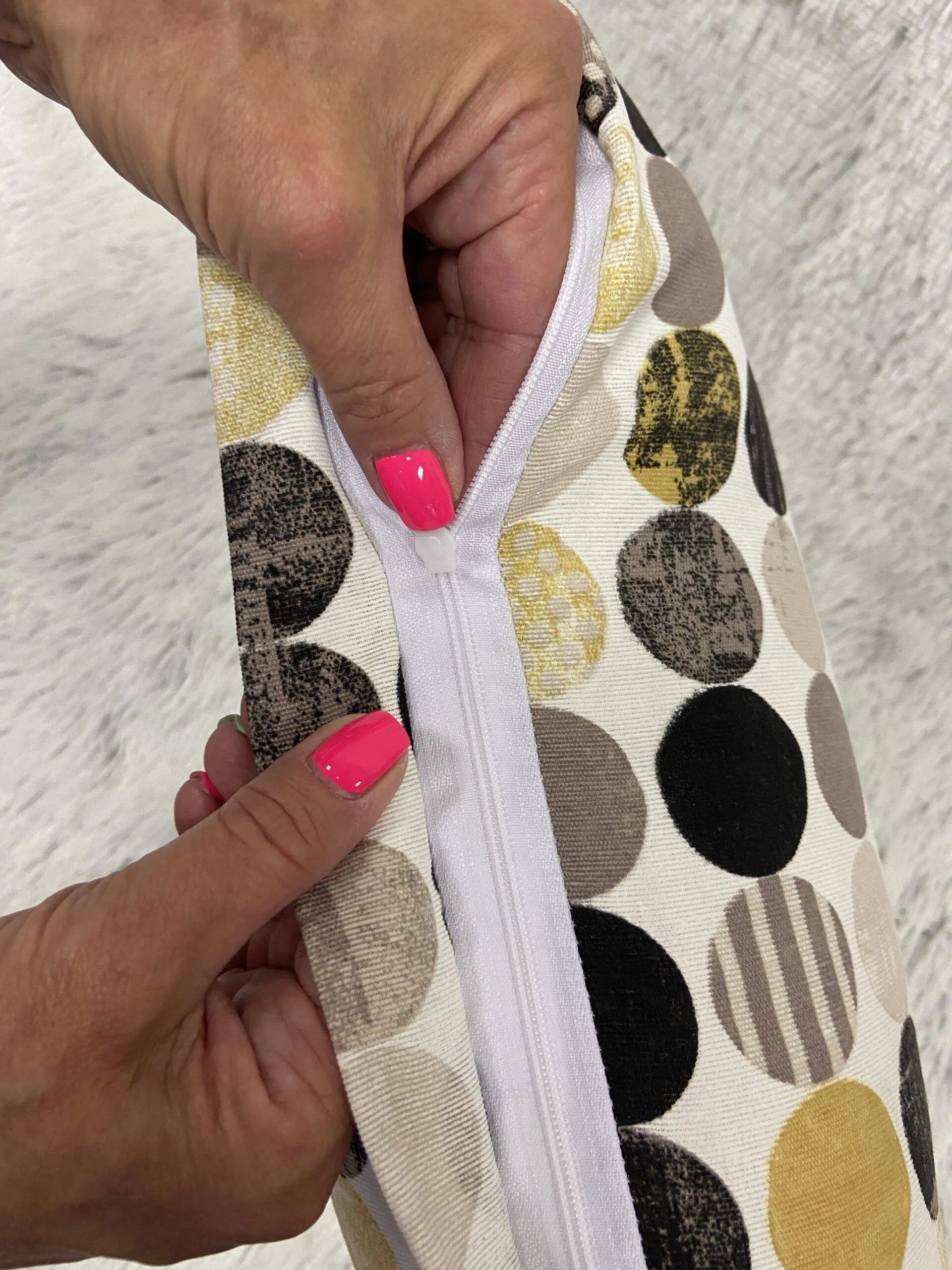 Váš polštář bude zářit v každé místnosti díky vzoru s kruhy. Povlak má praktické zapínání na zip, který je elegantně skrytý pod látkou, a tak není vidět ani cítit.