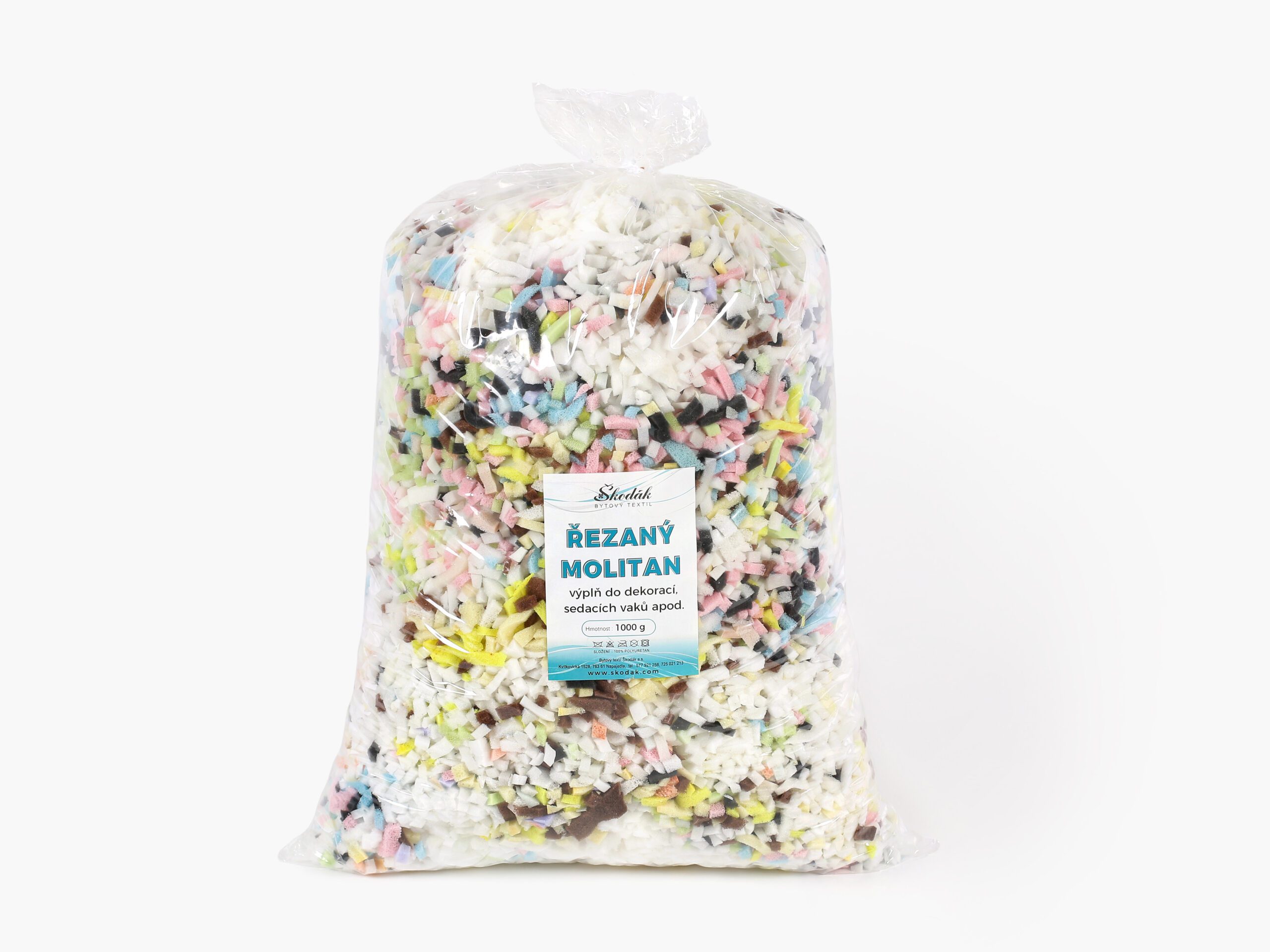 Náš řezaný molitan – výplň – 1 kg je skvělou volbou pro pohodlný odpočinek a dekorace ve vašem domově. Výplň je tvořená jemnými tyčinkami z barevné PU pěny – různobarevné kousky nebo z řezané líné pěny – převážně světlé kousky. Je tvárná a jemná, proto můžete řezanou směsí vyplnit téměř cokoliv.