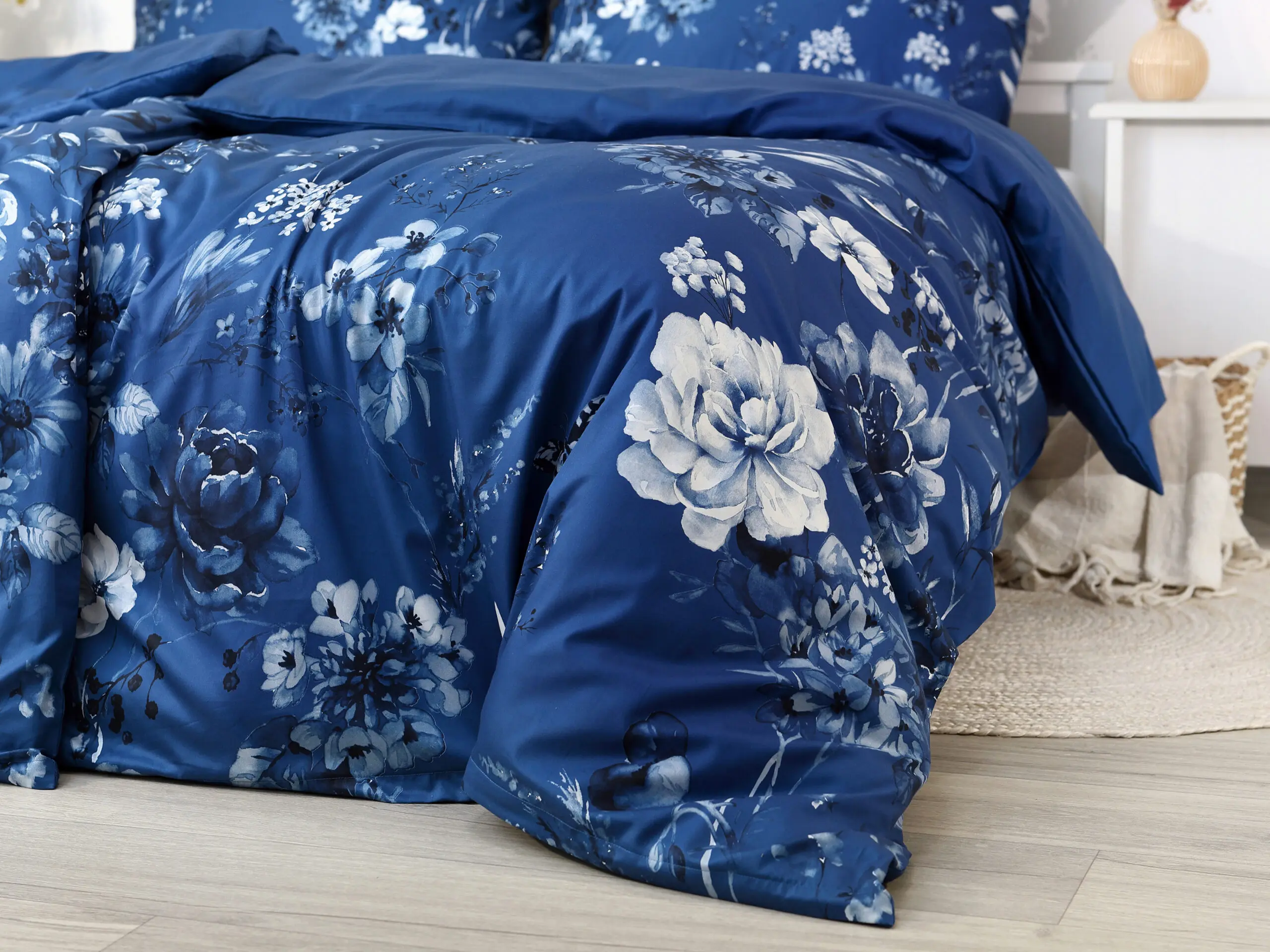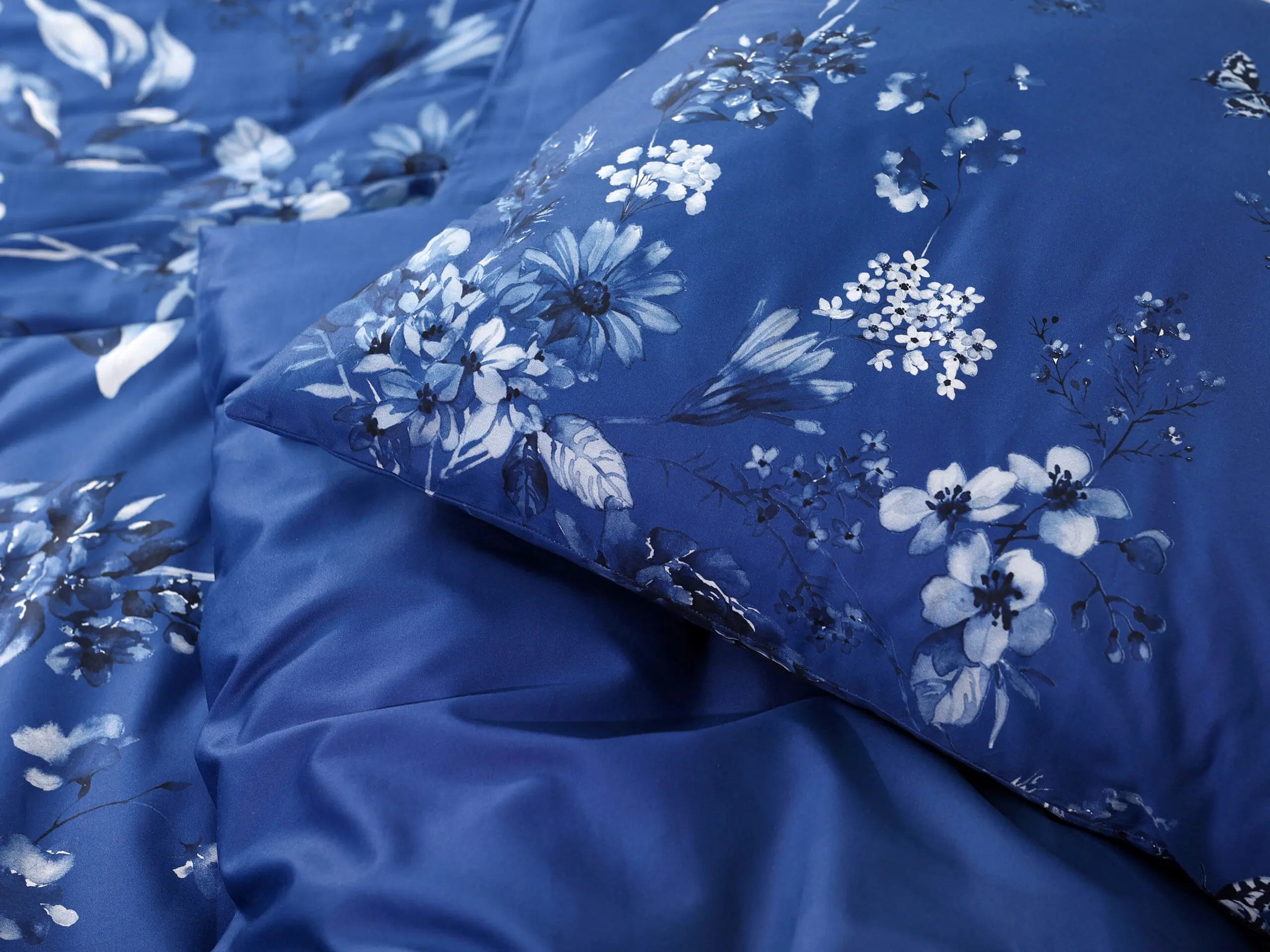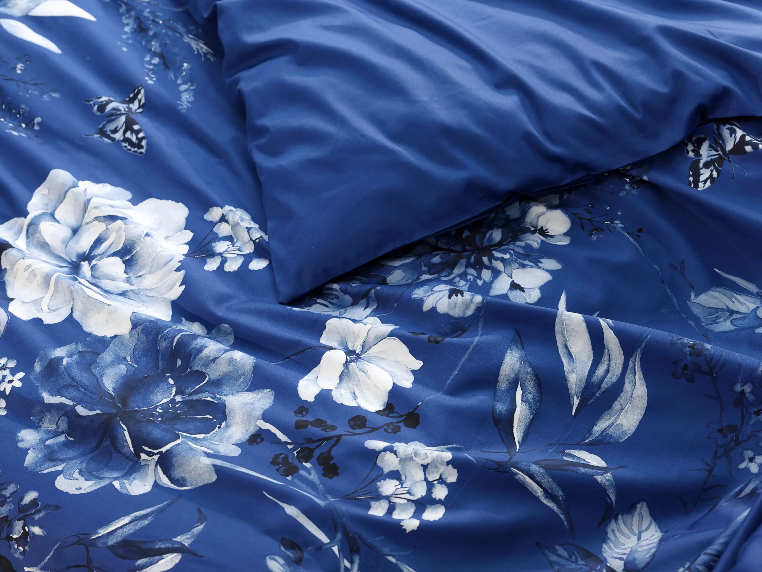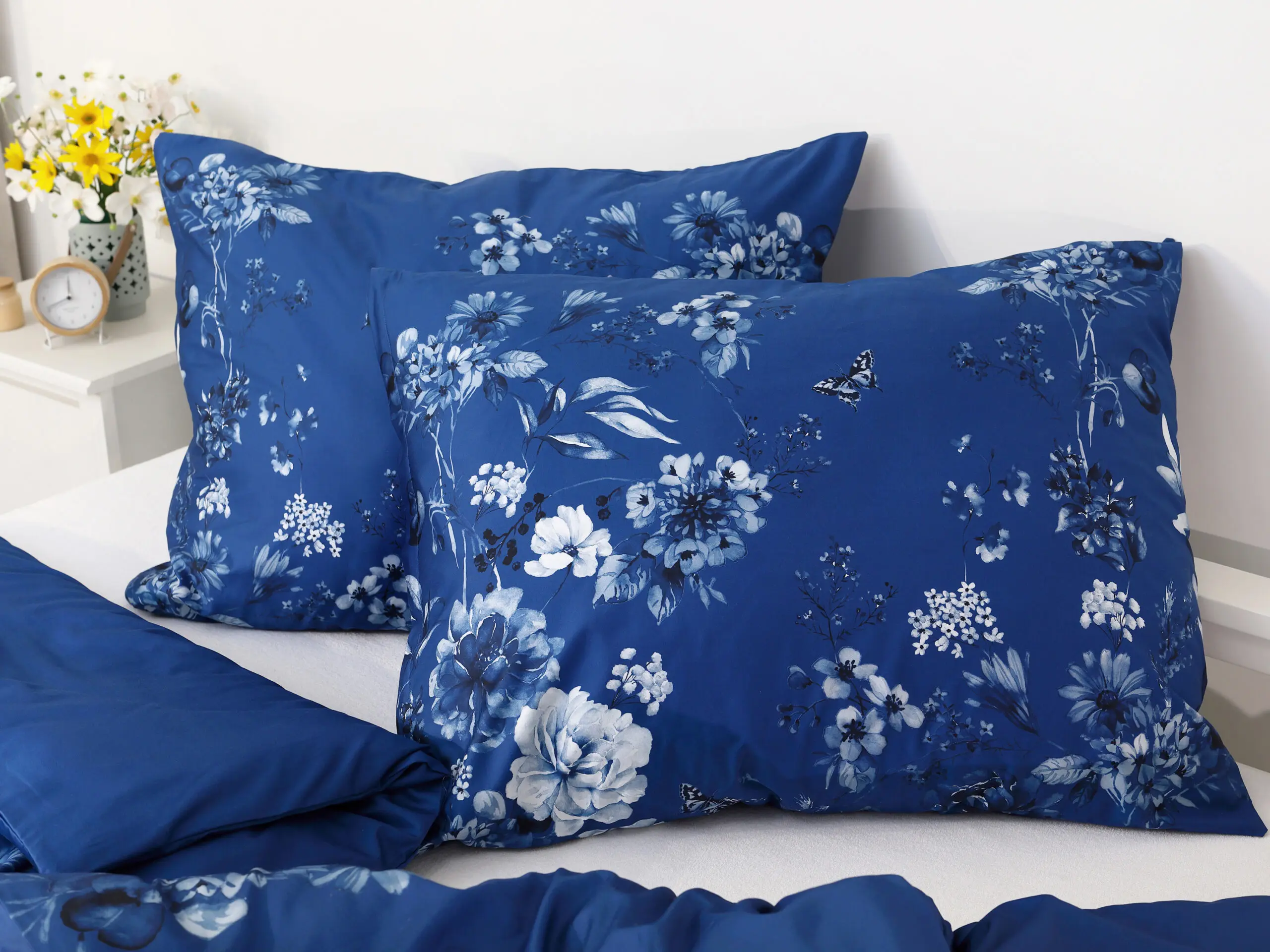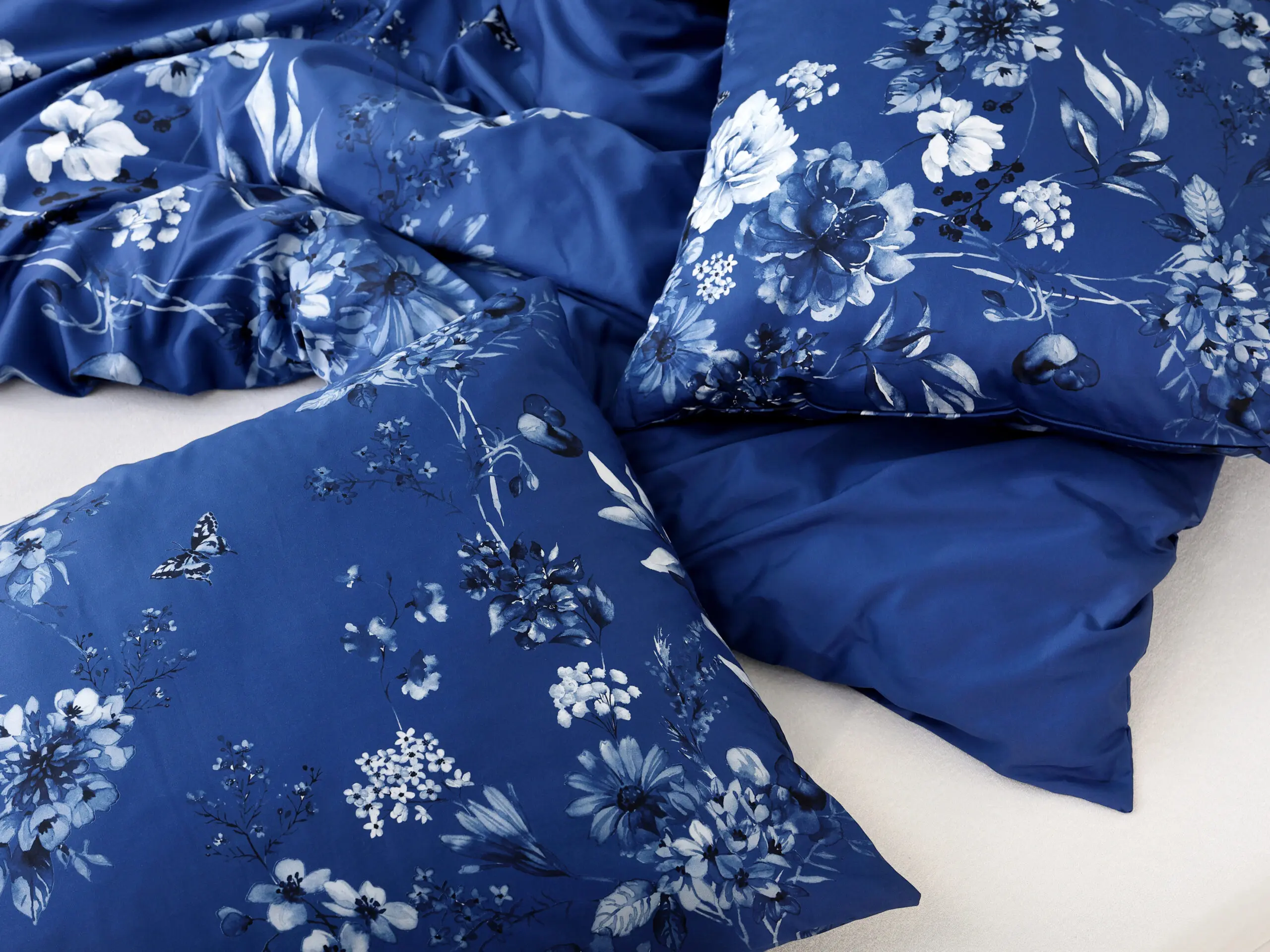 Naše saténové povlečení lilie na tmavě modré kombinuje kvalitu a dlouhou životnost. Díky 100% hustě tkané bavlněné přízni je povlečení krásně hebké a lesklé.